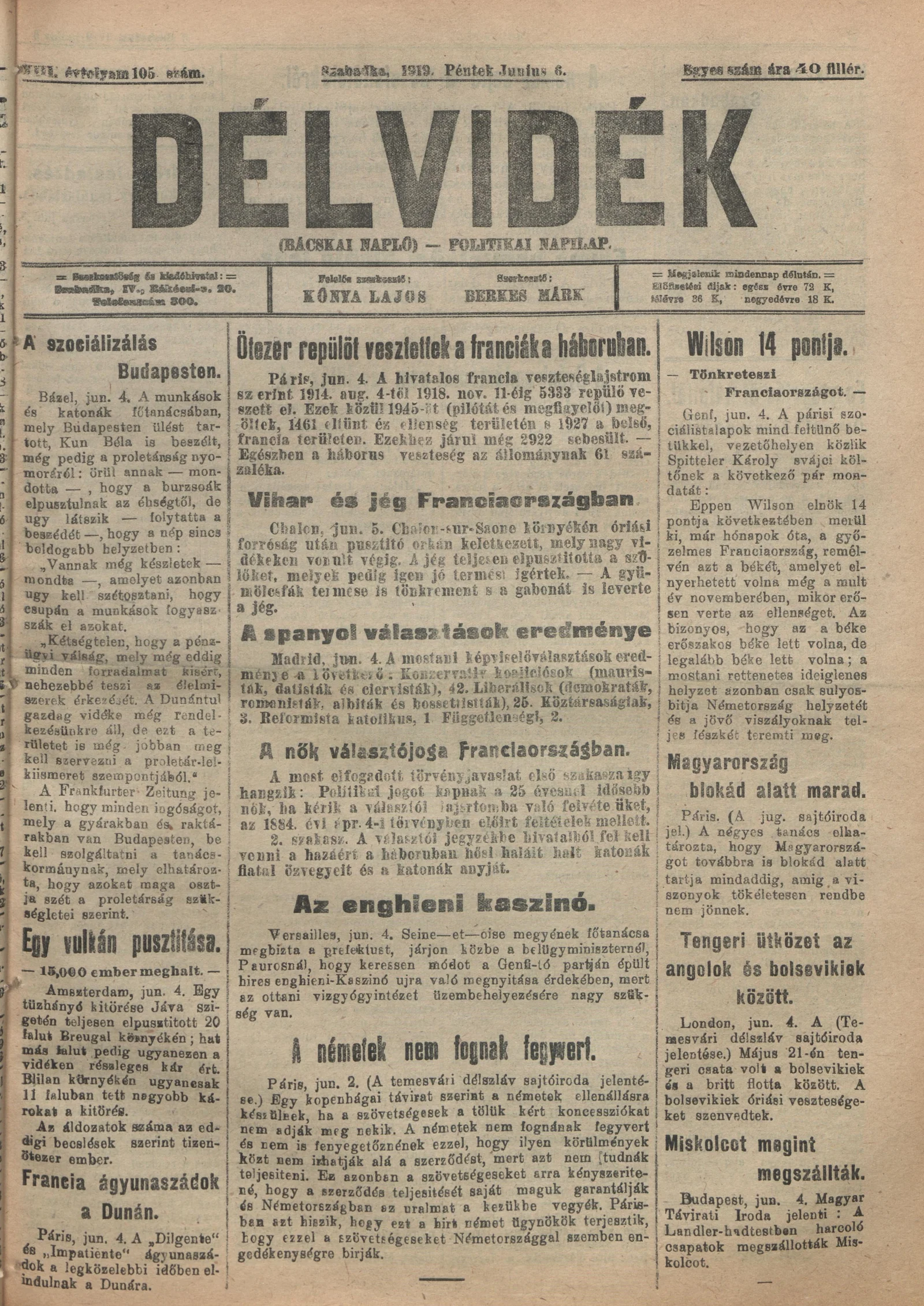 Délvidék, 13. évf. 1919. június 6. 105. sz.