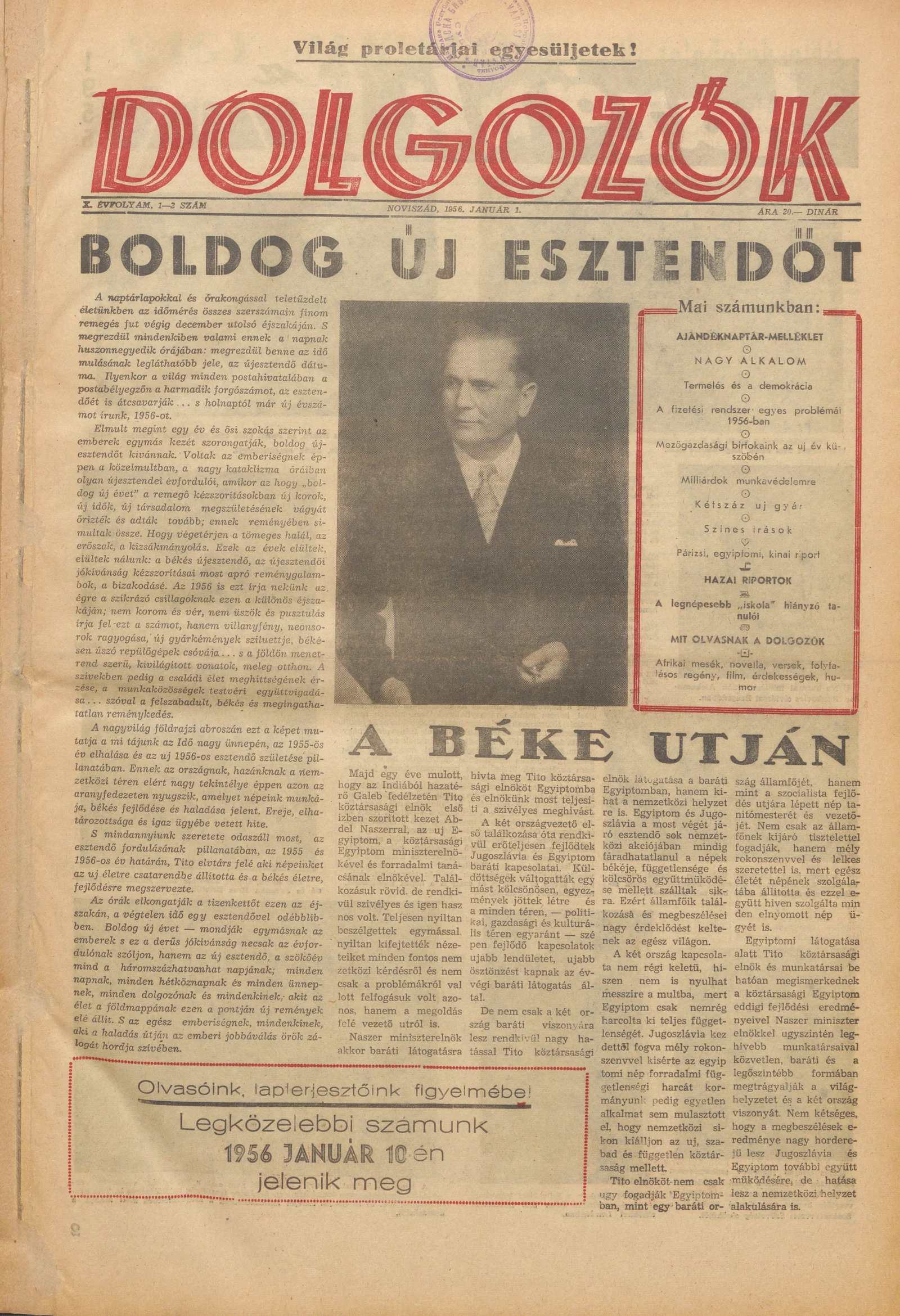 Dolgozók, 10. évf. 1956. január 1. 1–2. sz.