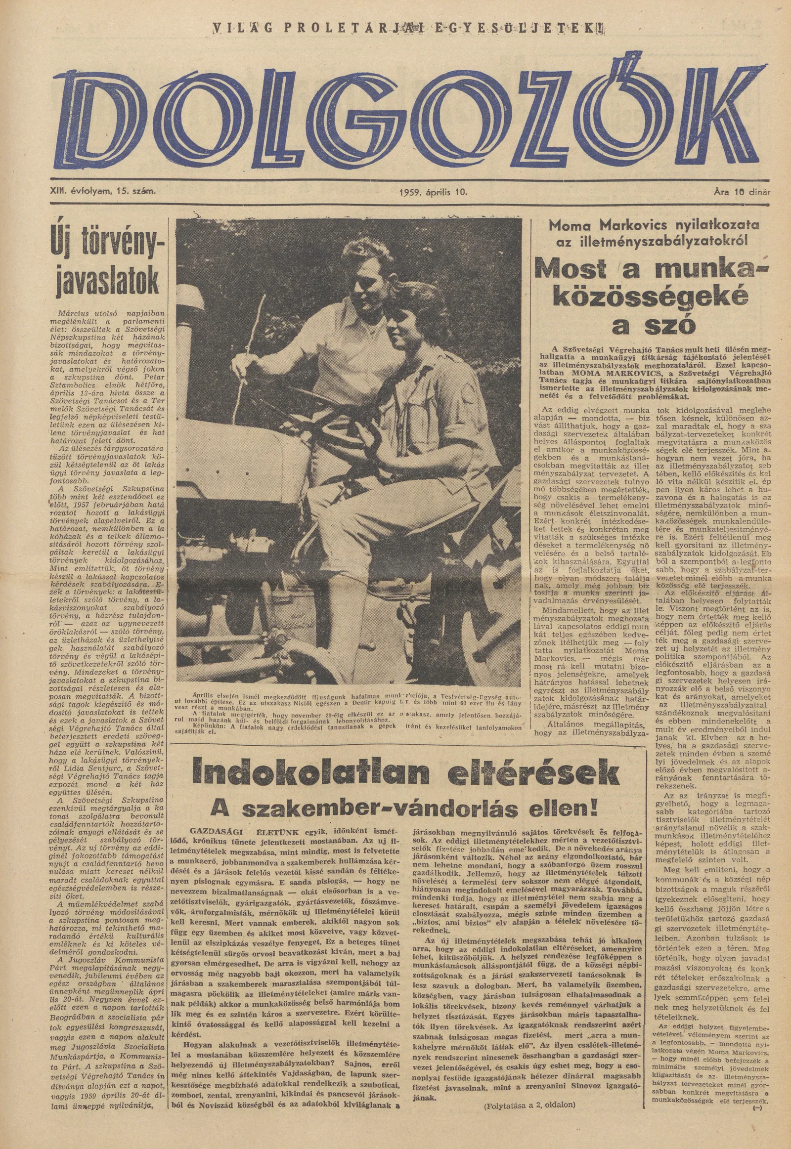 Dolgozók, 13. évf. 1959. április 10. 15. sz.