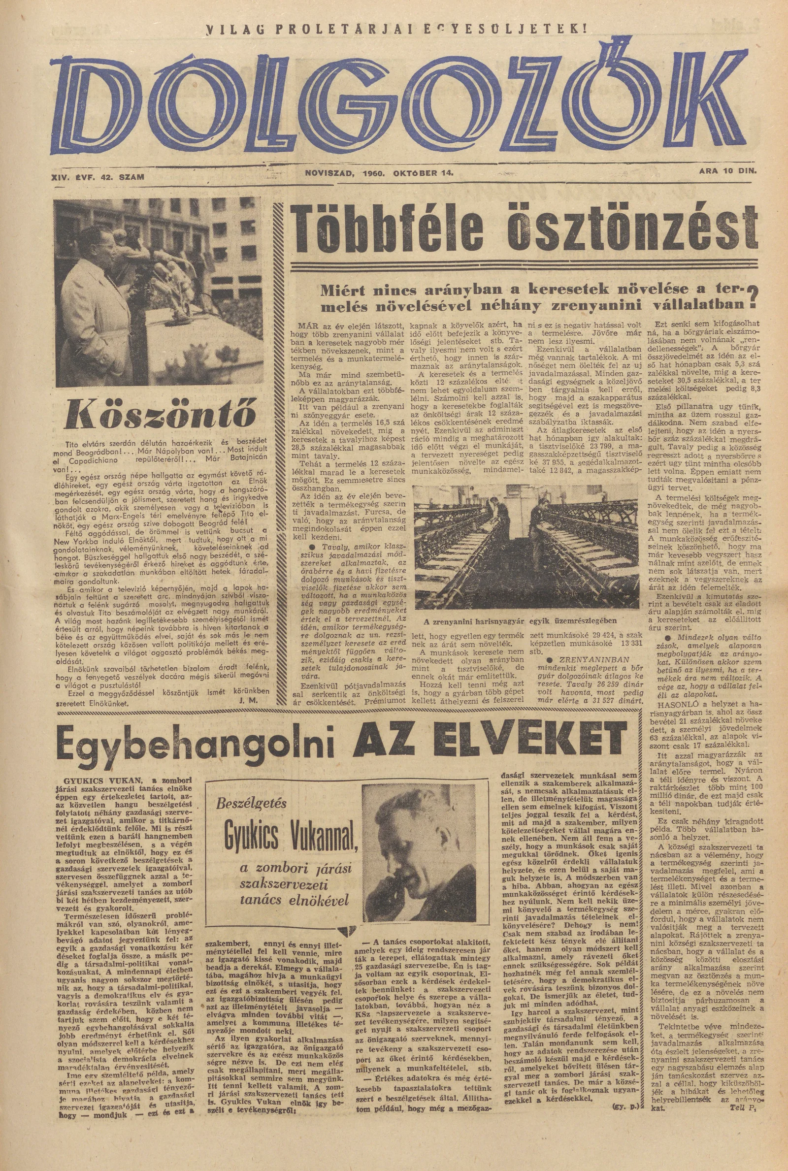 Dolgozók, 14. évf. 1960. október 14. 42. sz.