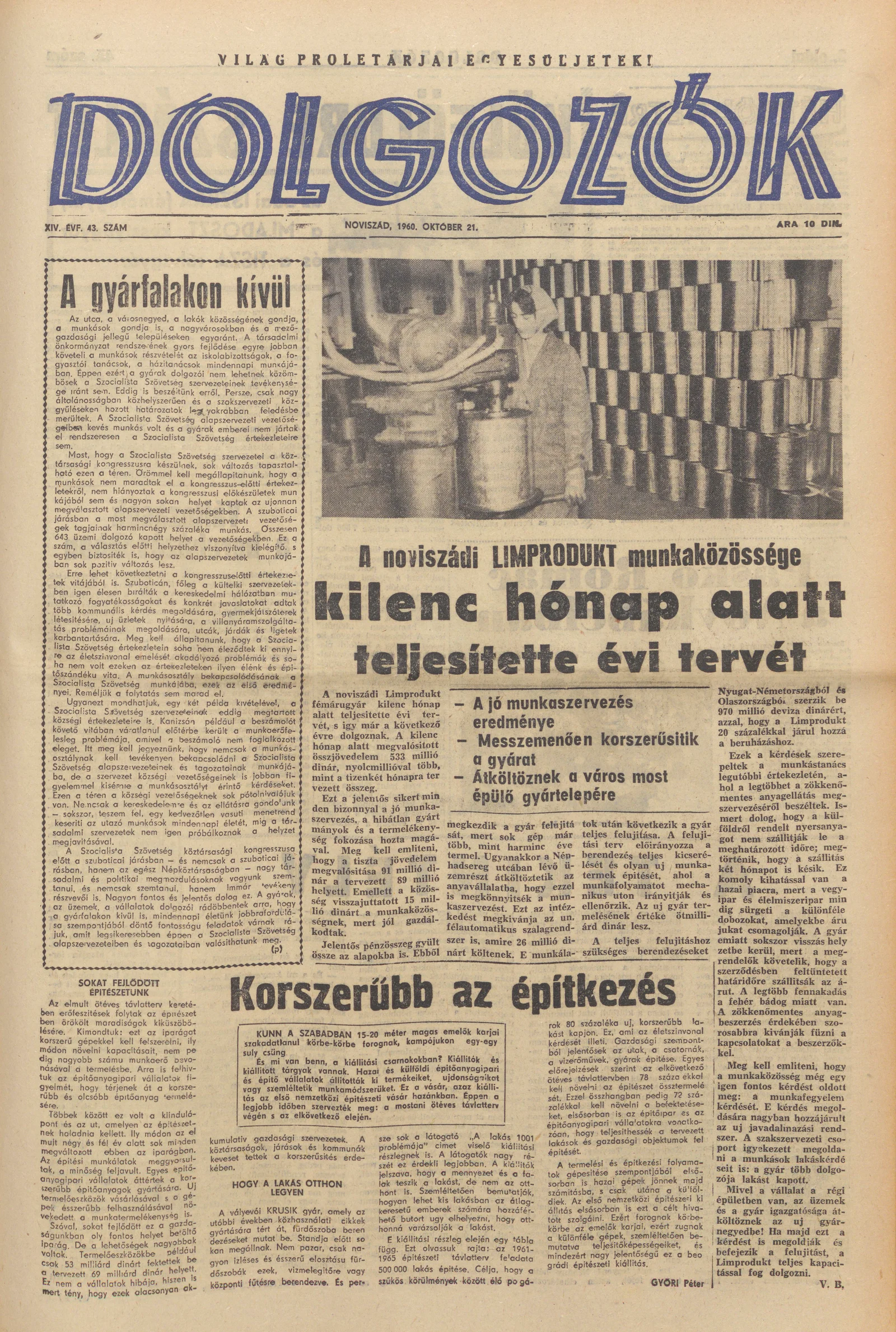 Dolgozók, 14. évf. 1960. október 21. 43. sz.