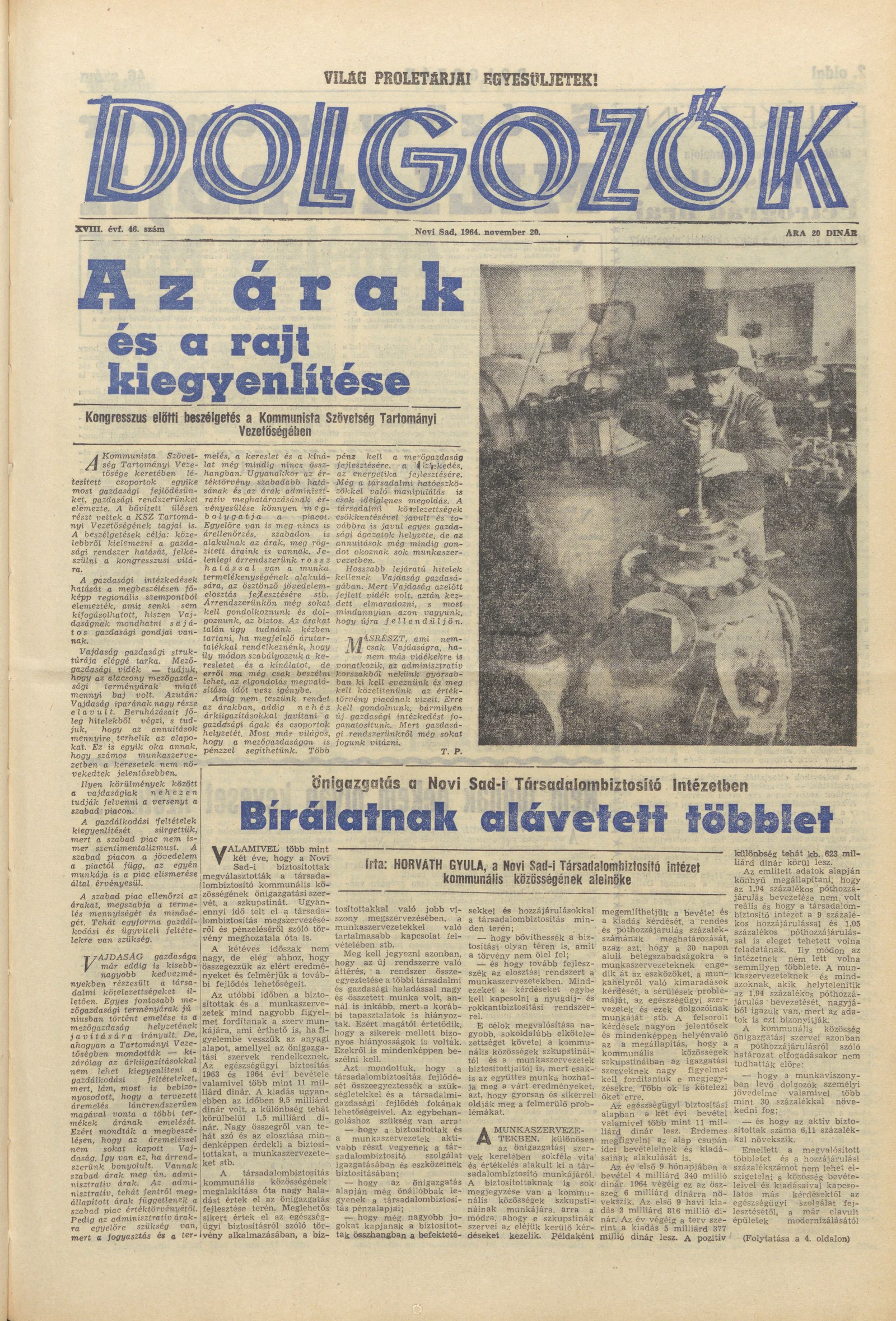 Dolgozók, 18. évf. 1964. november 20. 46. sz.