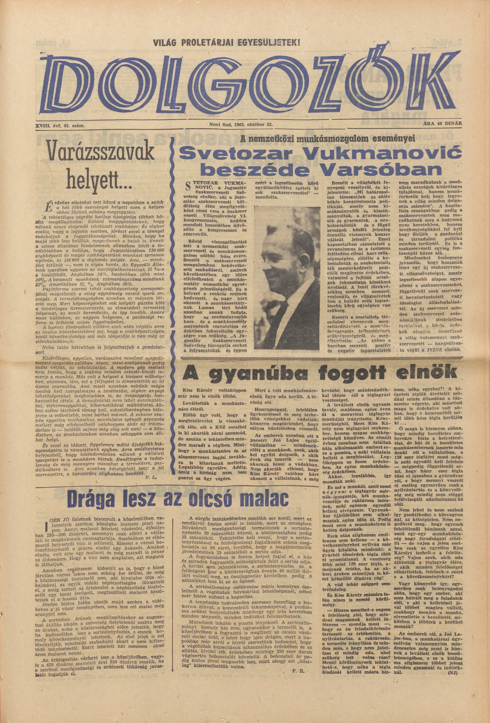 Dolgozók, 19. évf. 1965. október 22. 42. sz.
