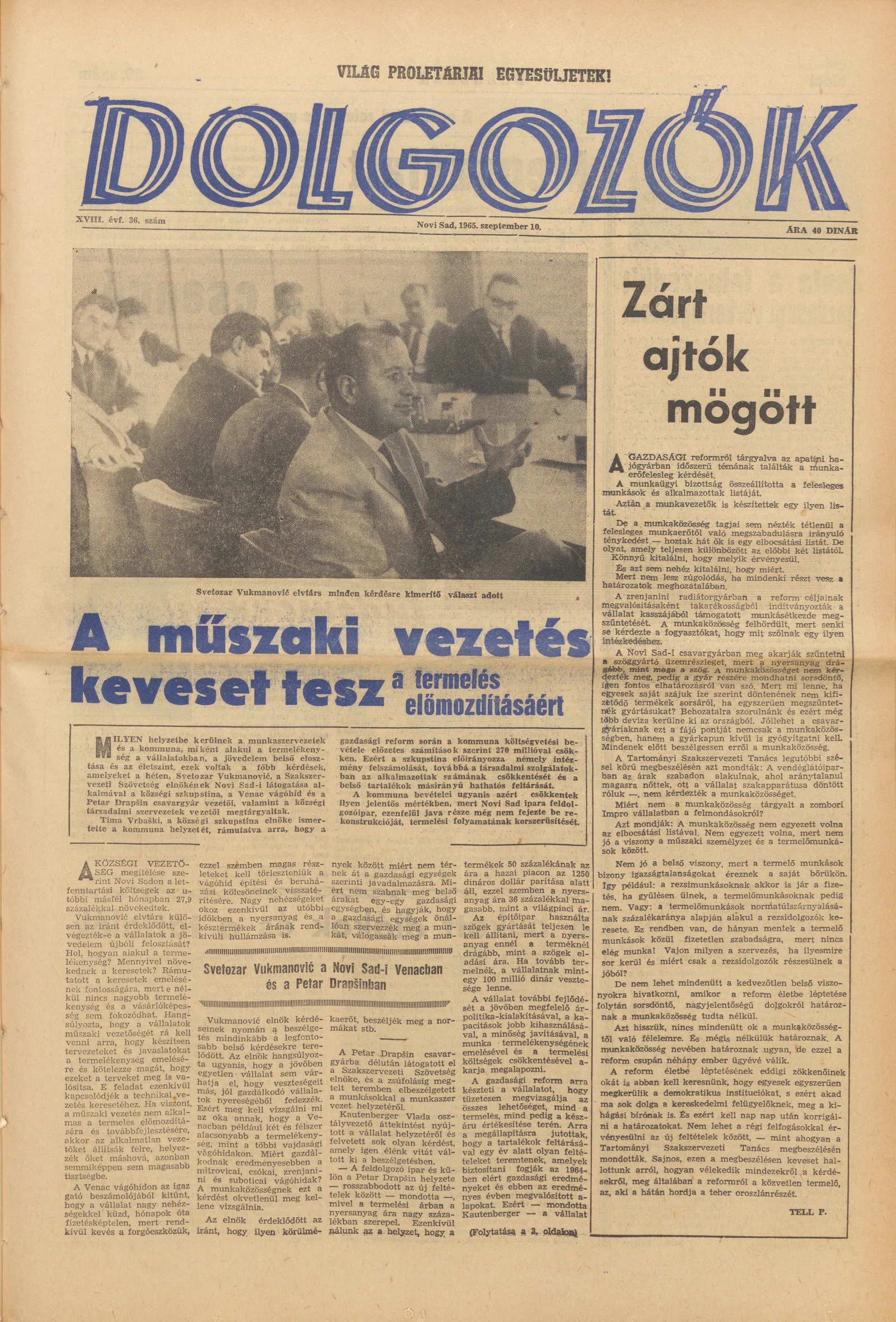 Dolgozók, 19. évf. 1965. szeptember 10. 36. sz.