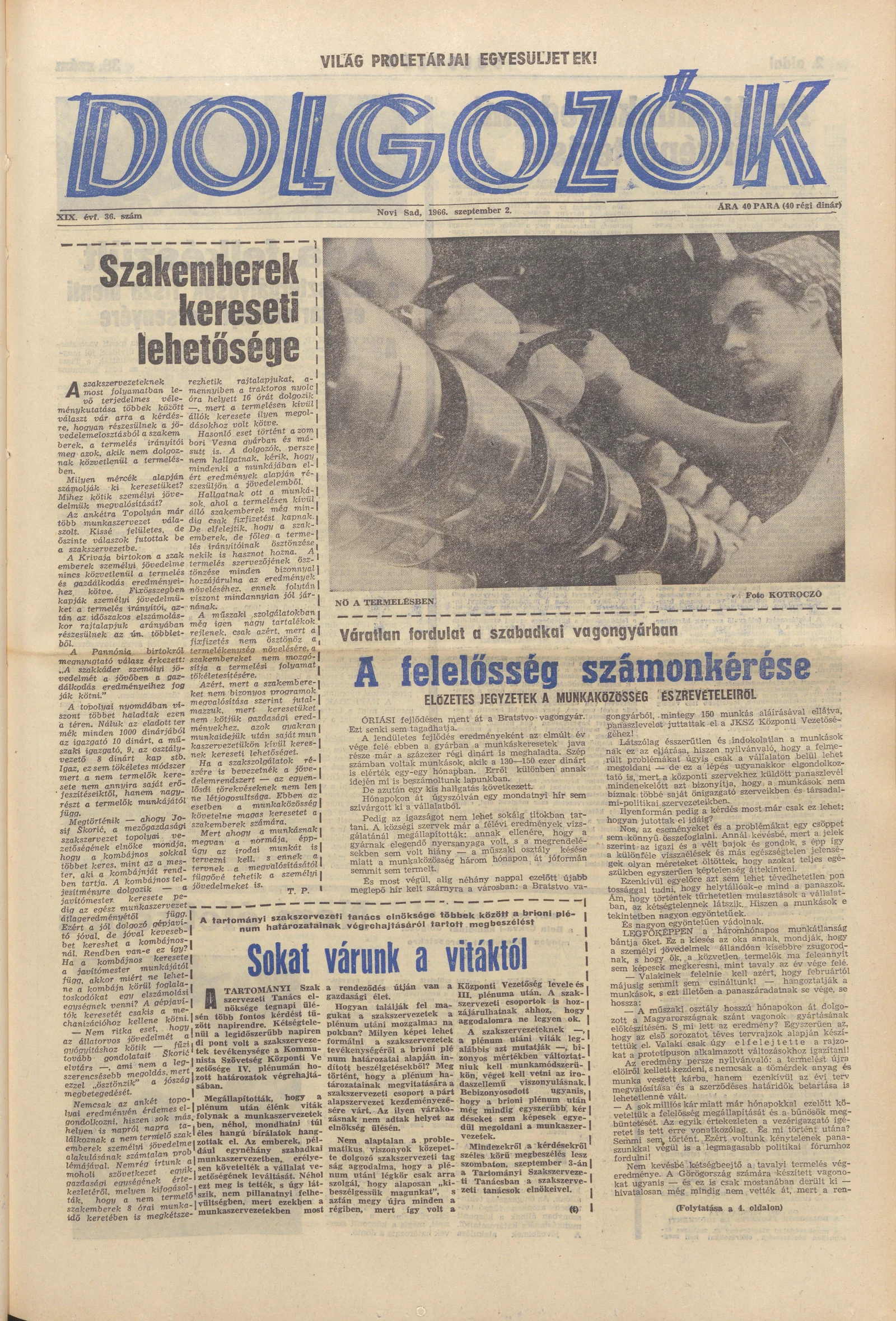 Dolgozók, 20. évf. 1966. szeptember 2. 36. sz.