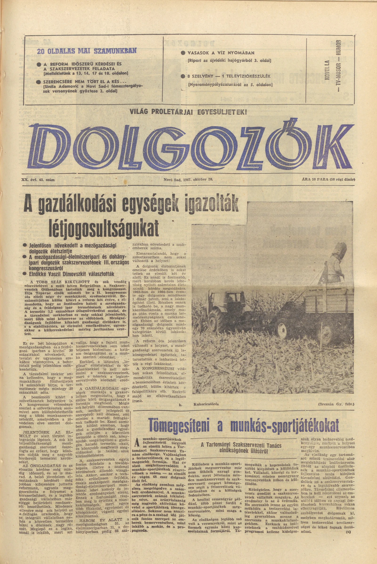 Dolgozók, 21. évf. 1967. október 20. 43. sz.