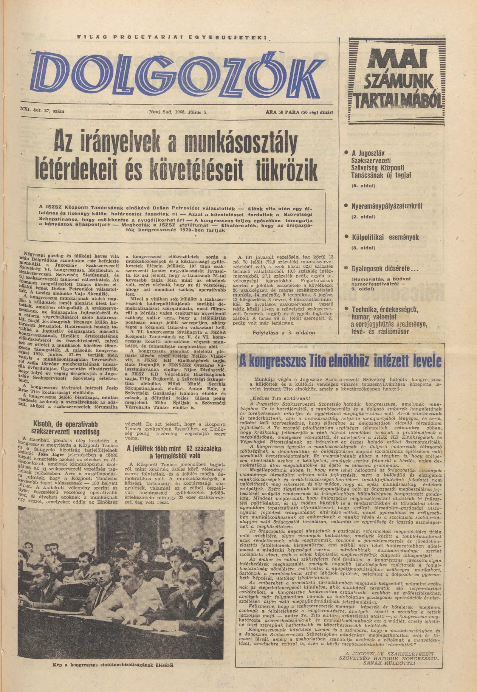 Dolgozók, 22. évf. 1968. július 5. 27. sz.