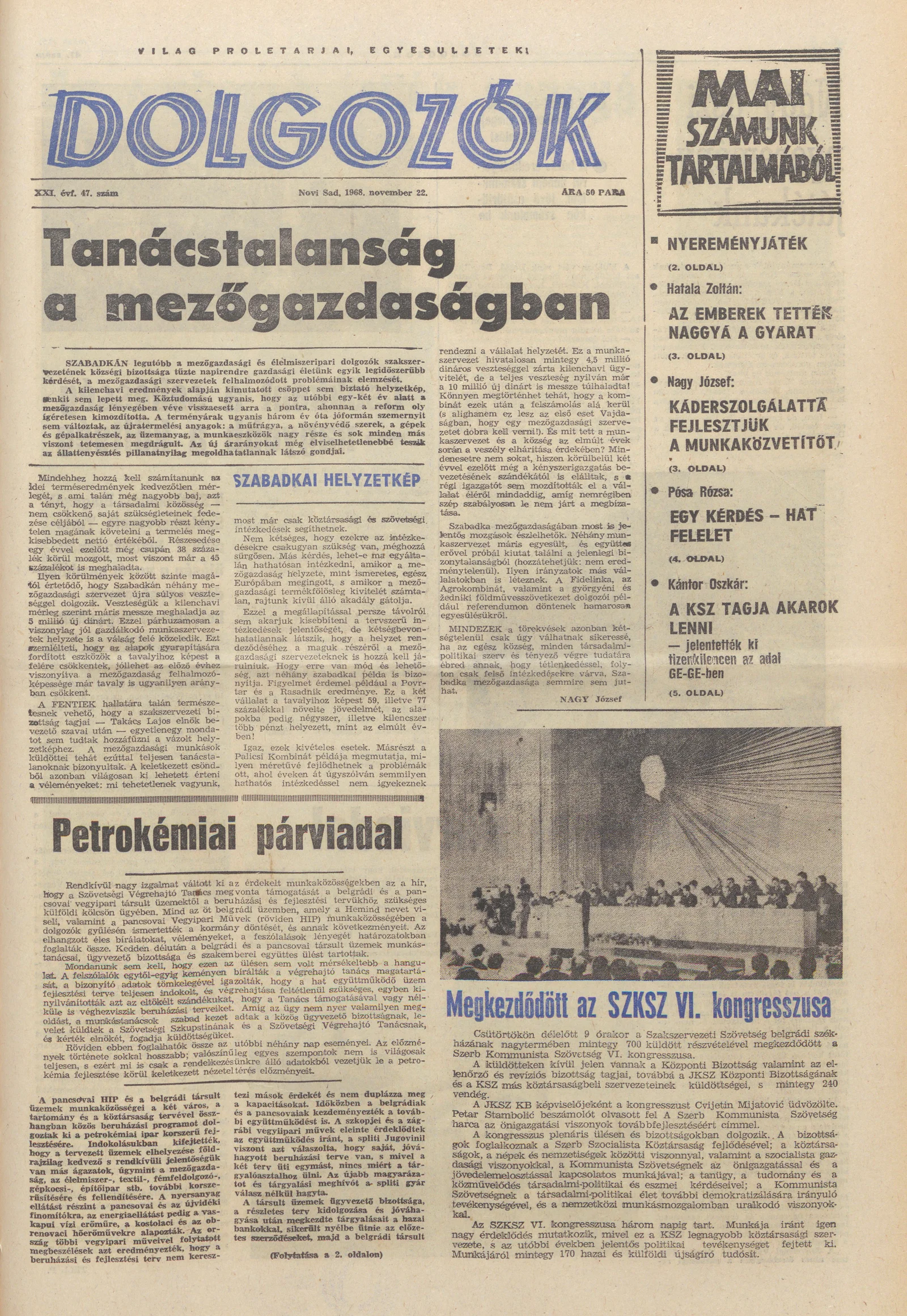 Dolgozók, 22. évf. 1968. november 22. 47. sz.