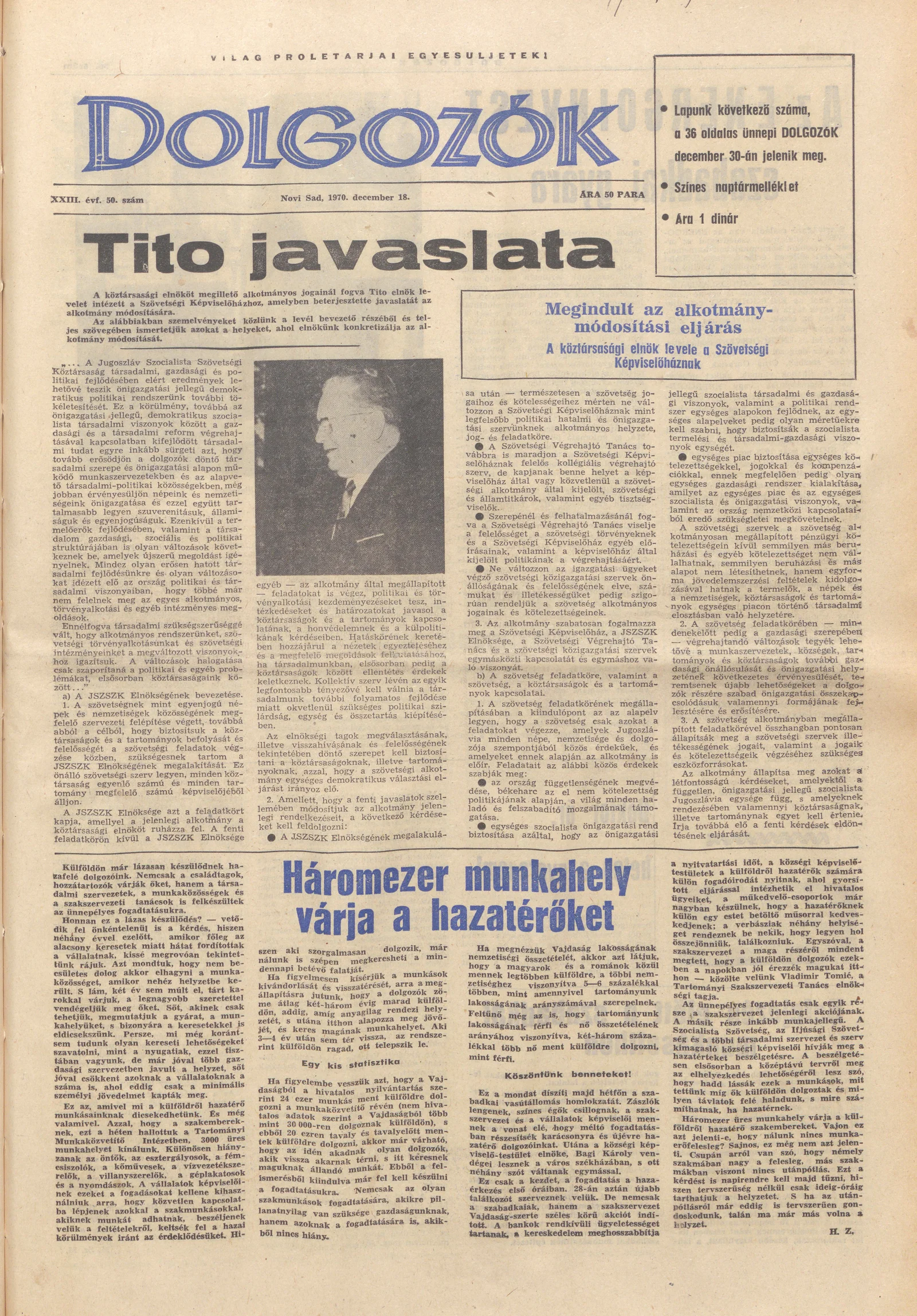 Dolgozók, 24. évf. 1970. december 18. 50. sz.