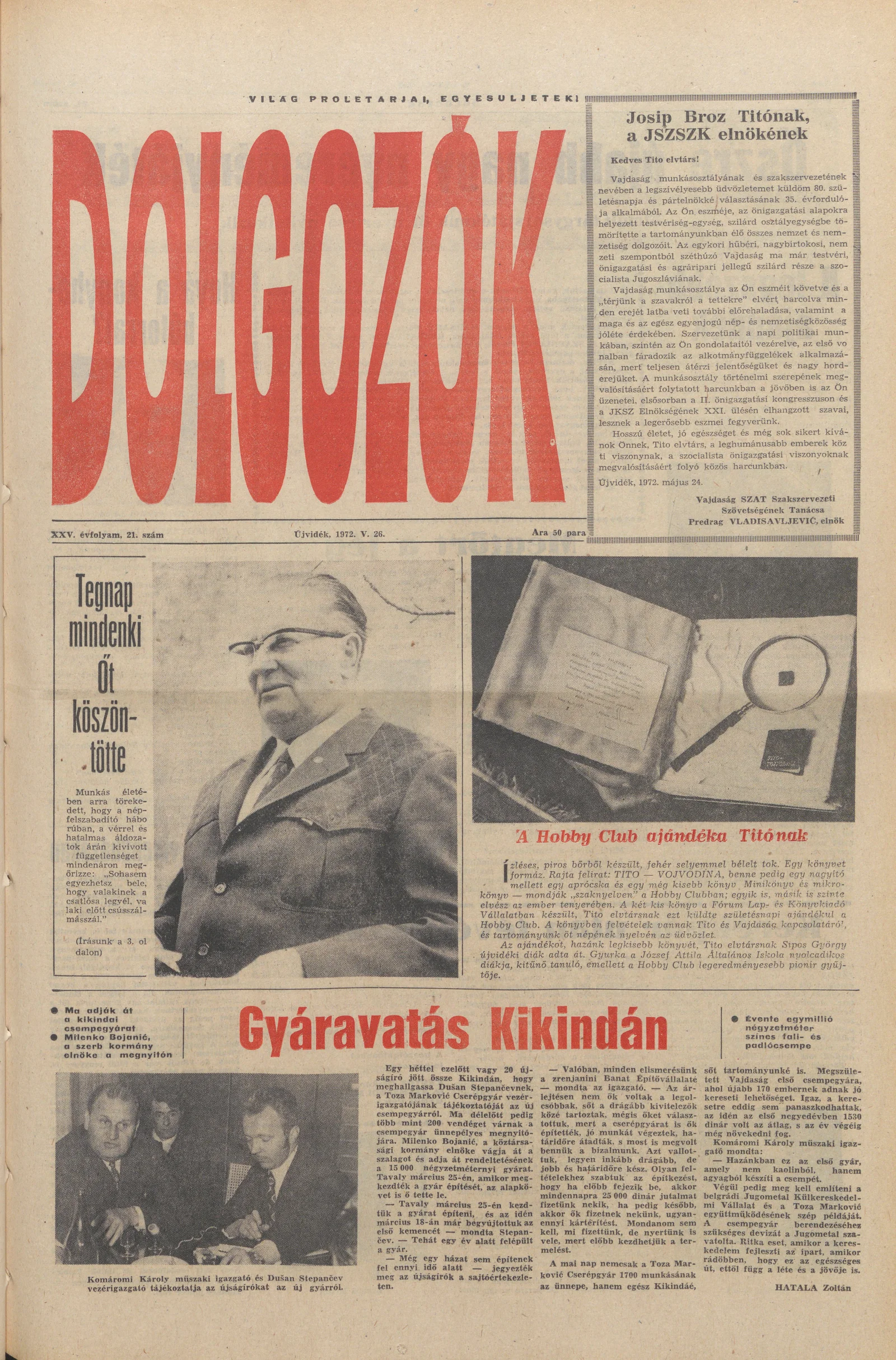 Dolgozók, 26. évf. 1972. május 26. 21. sz.