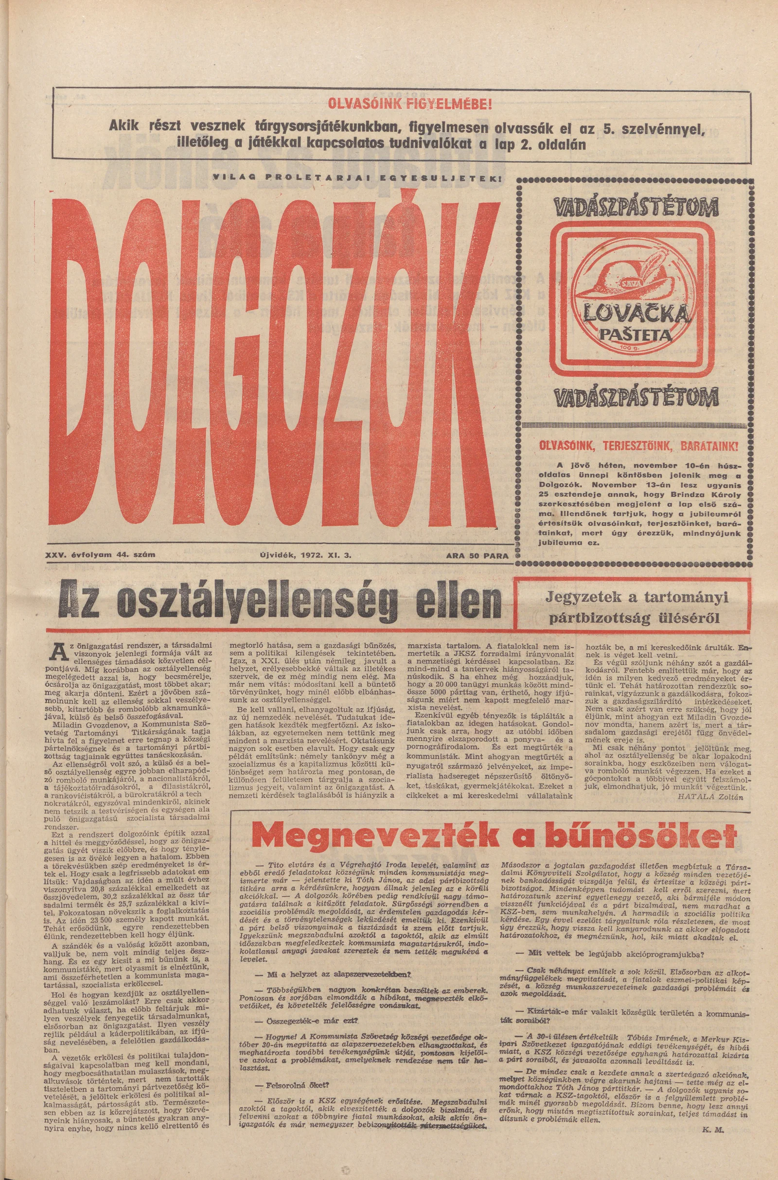 Dolgozók, 26. évf. 1972. november 3. 44. sz.