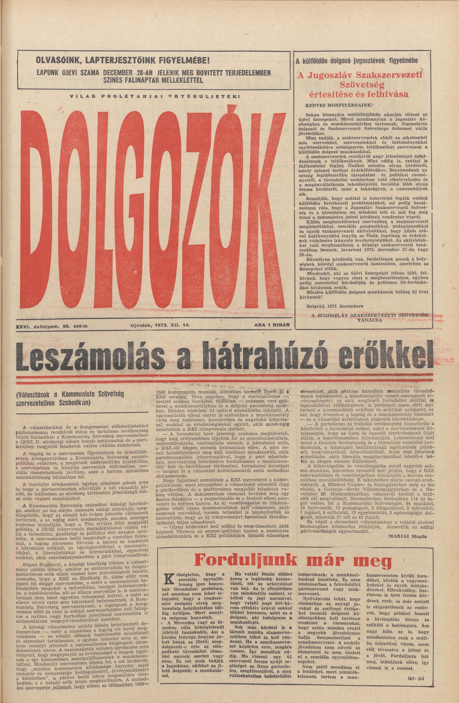 Dolgozók, 27. évf. 1973. december 14. 50. sz.