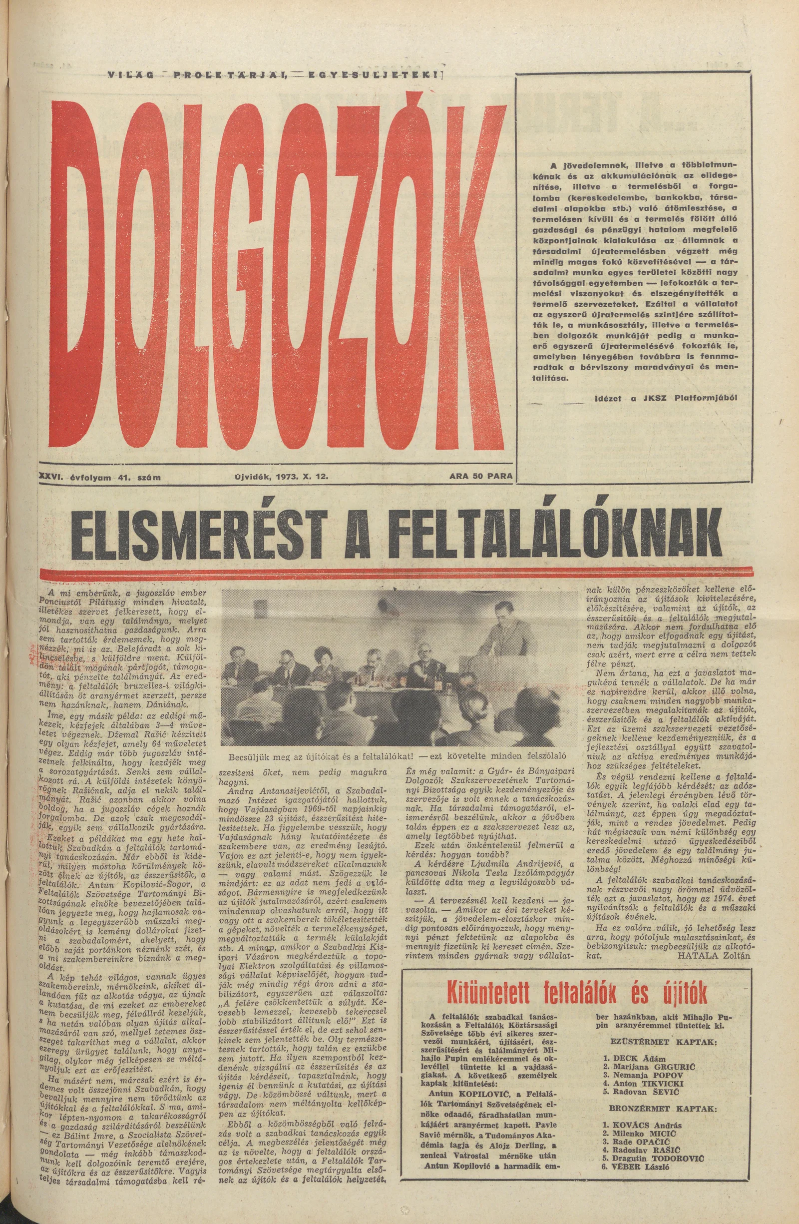 Dolgozók, 27. évf. 1973. október 12. 41. sz.