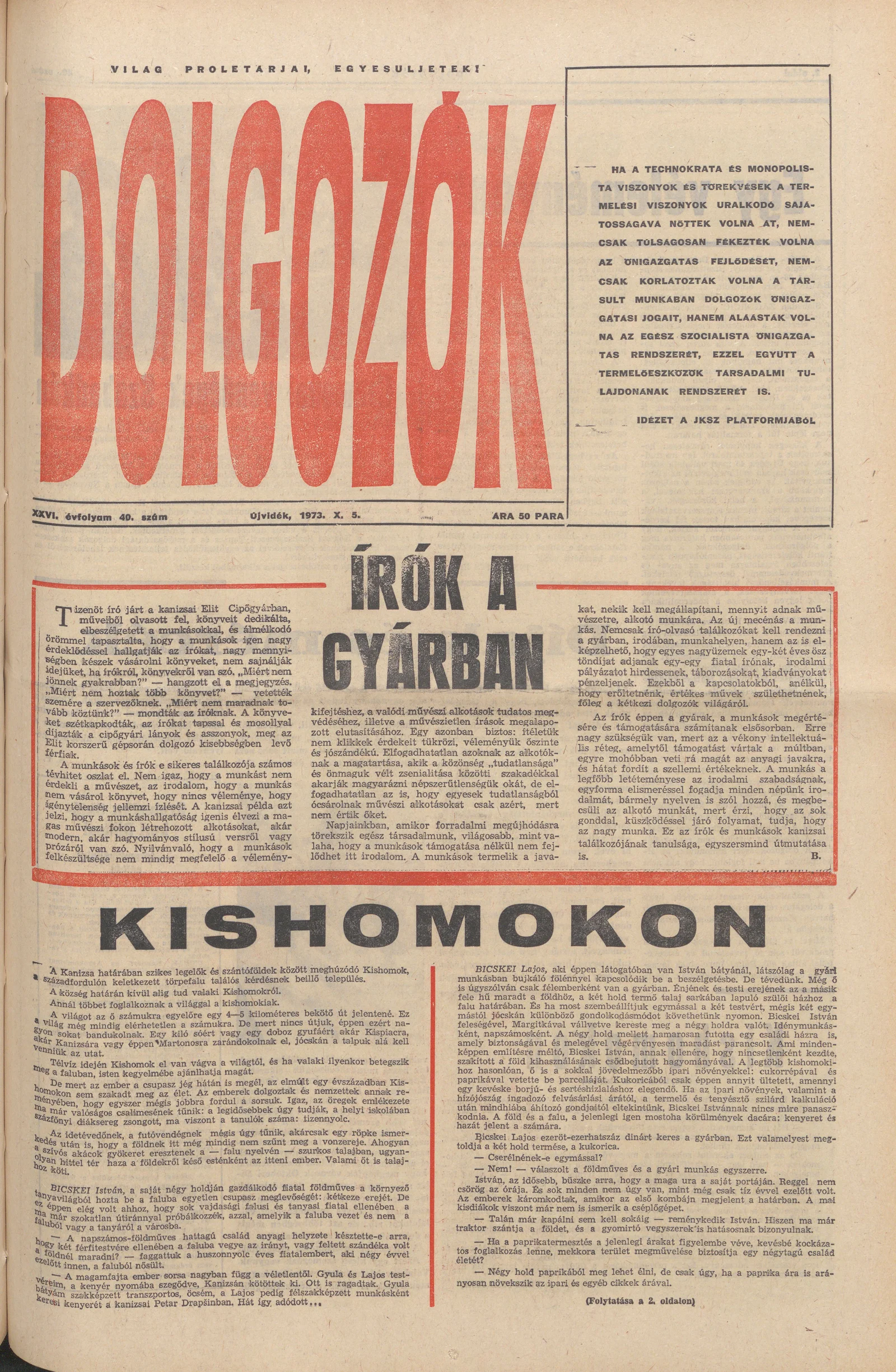 Dolgozók, 27. évf. 1973. október 5. 40. sz.
