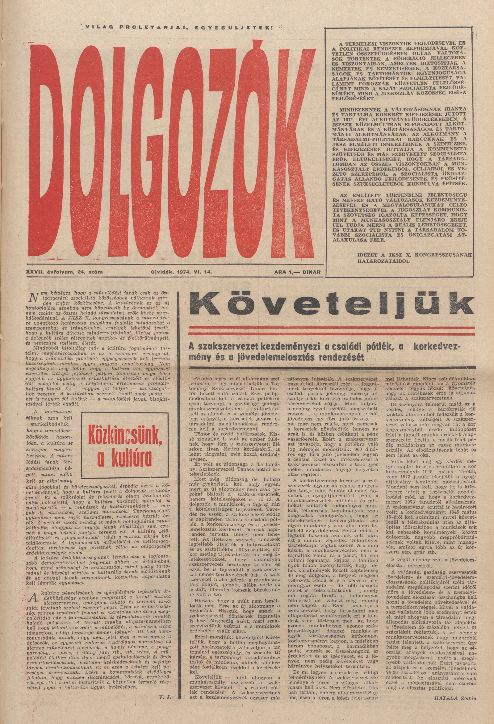 Dolgozók, 28. évf. 1974. július 14. 24. sz.