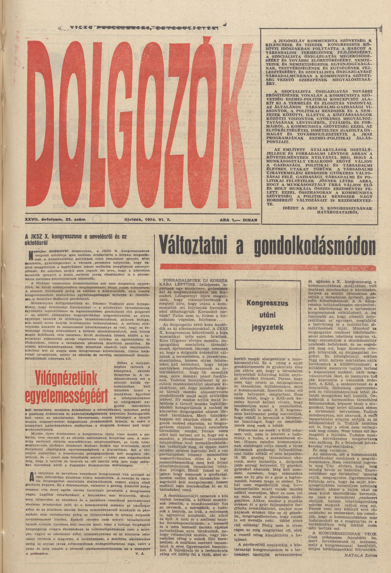 Dolgozók, 28. évf. 1974. június 7. 23. sz.
