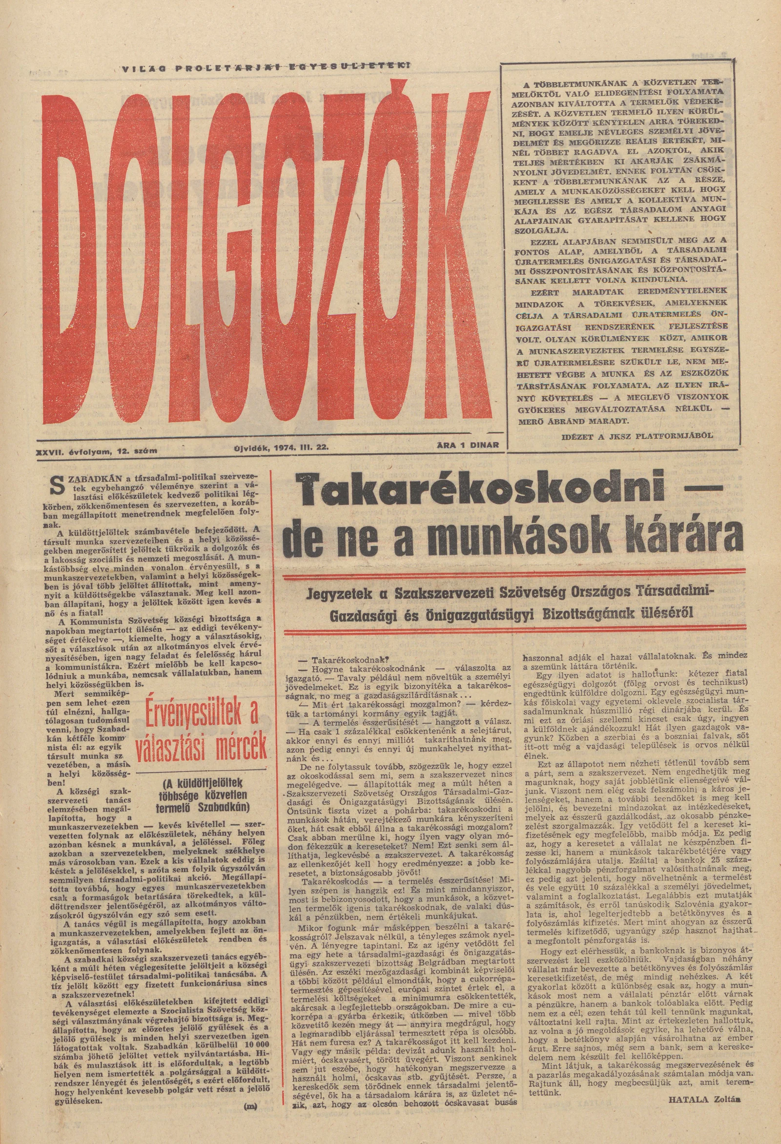 Dolgozók, 28. évf. 1974. március 22. 12. sz.