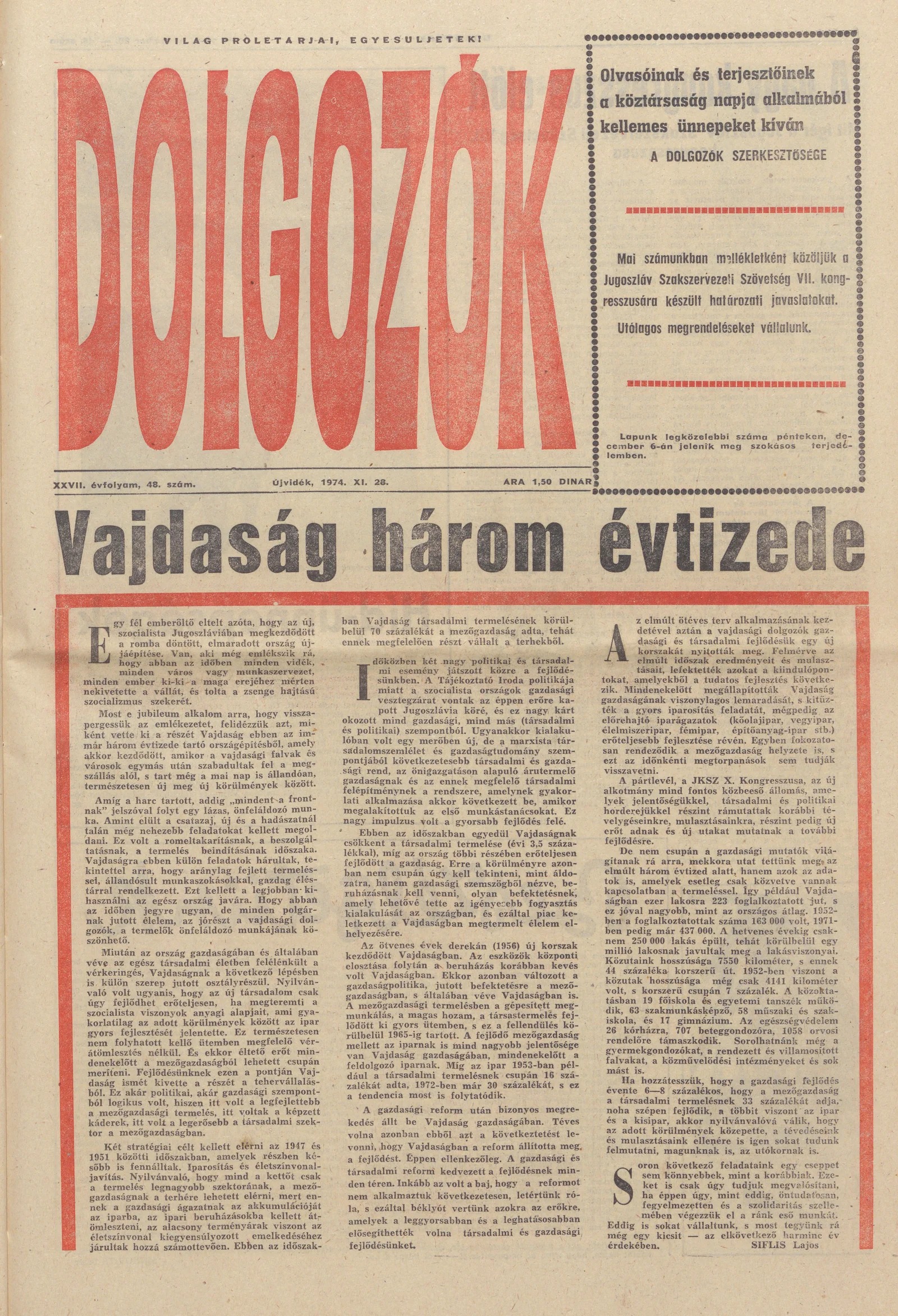 Dolgozók, 28. évf. 1974. november 28. 48. sz.