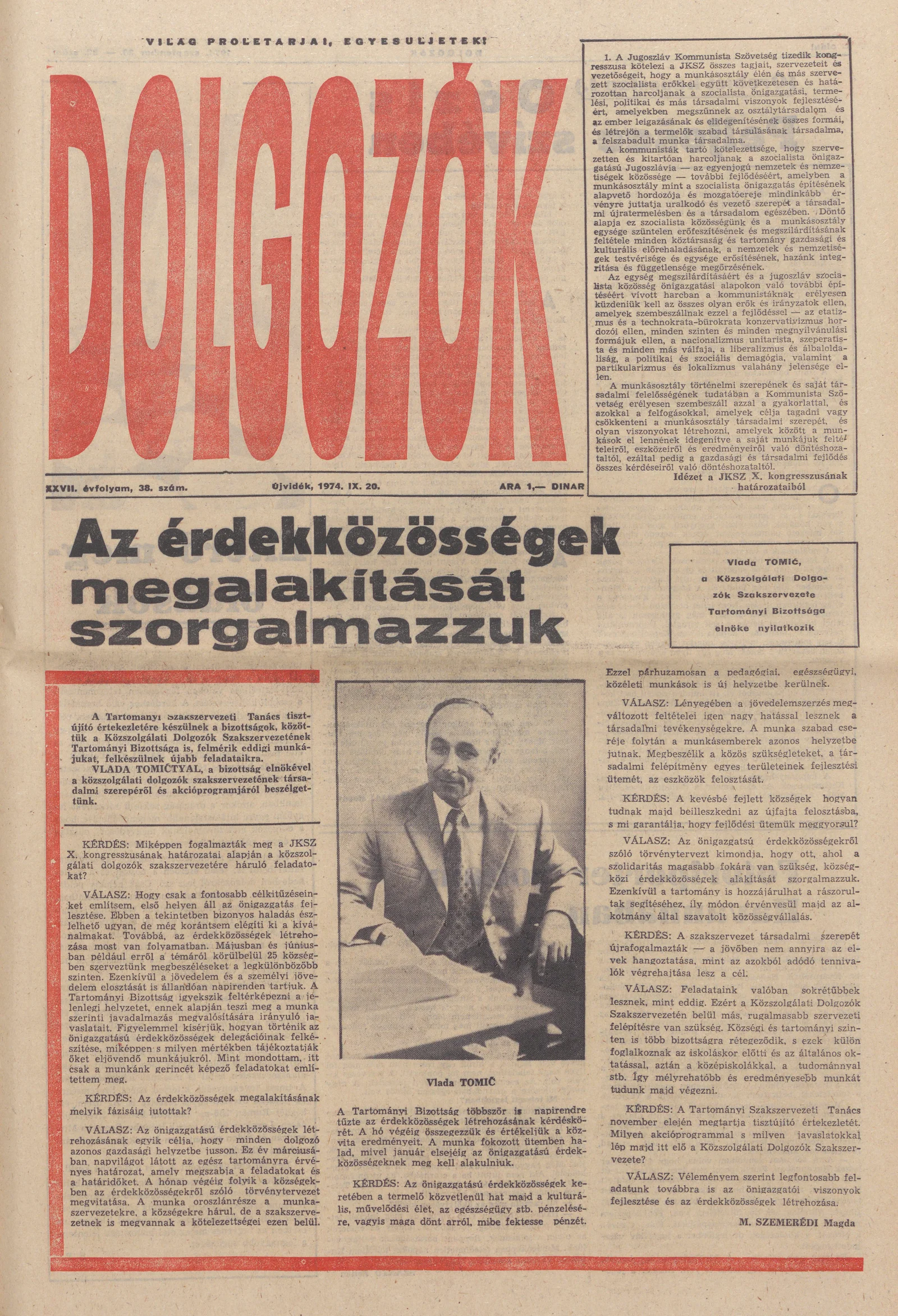 Dolgozók, 28. évf. 1974. szeptember 20. 38. sz.