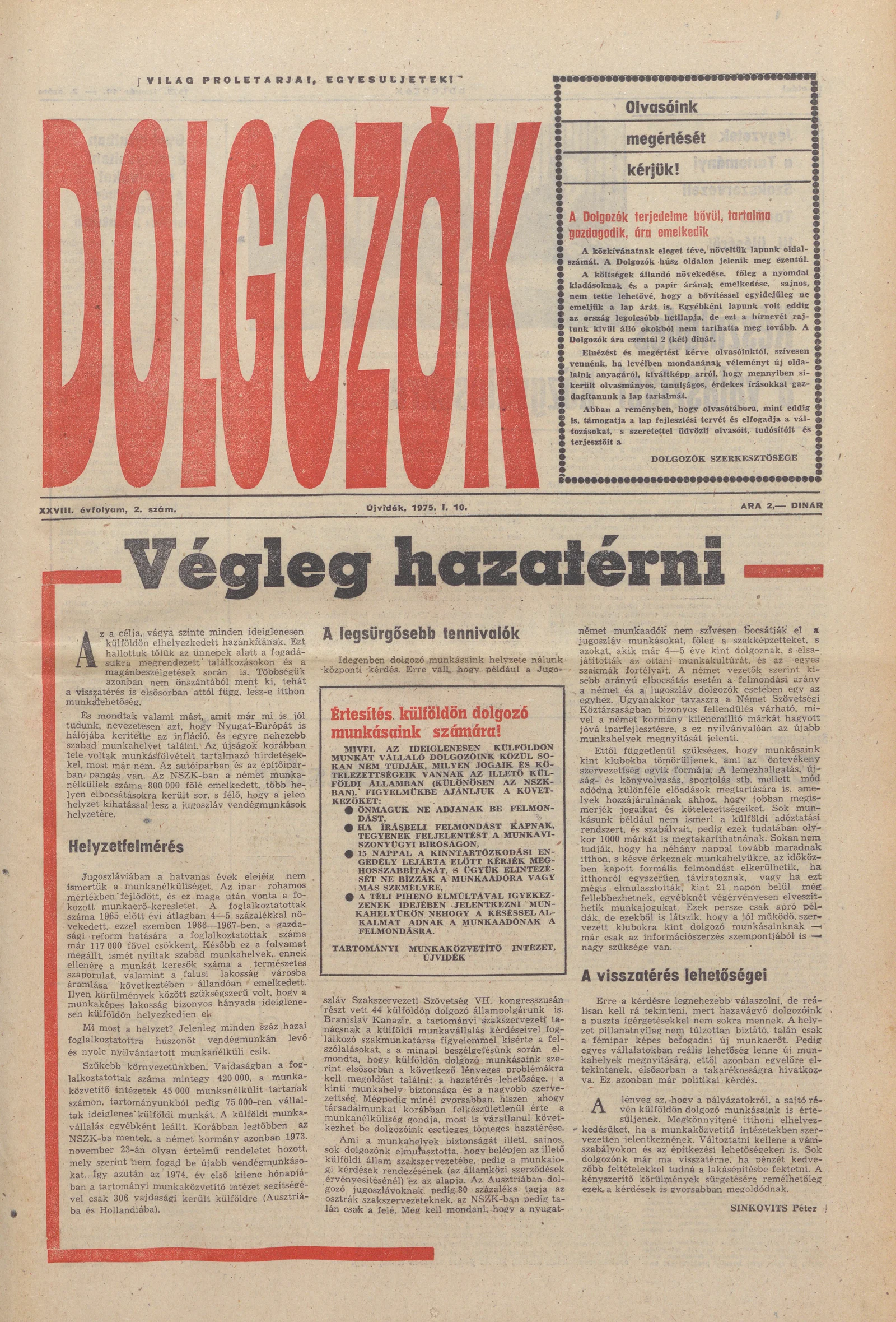 Dolgozók, 29. évf. 1975. január 10. 2. sz.