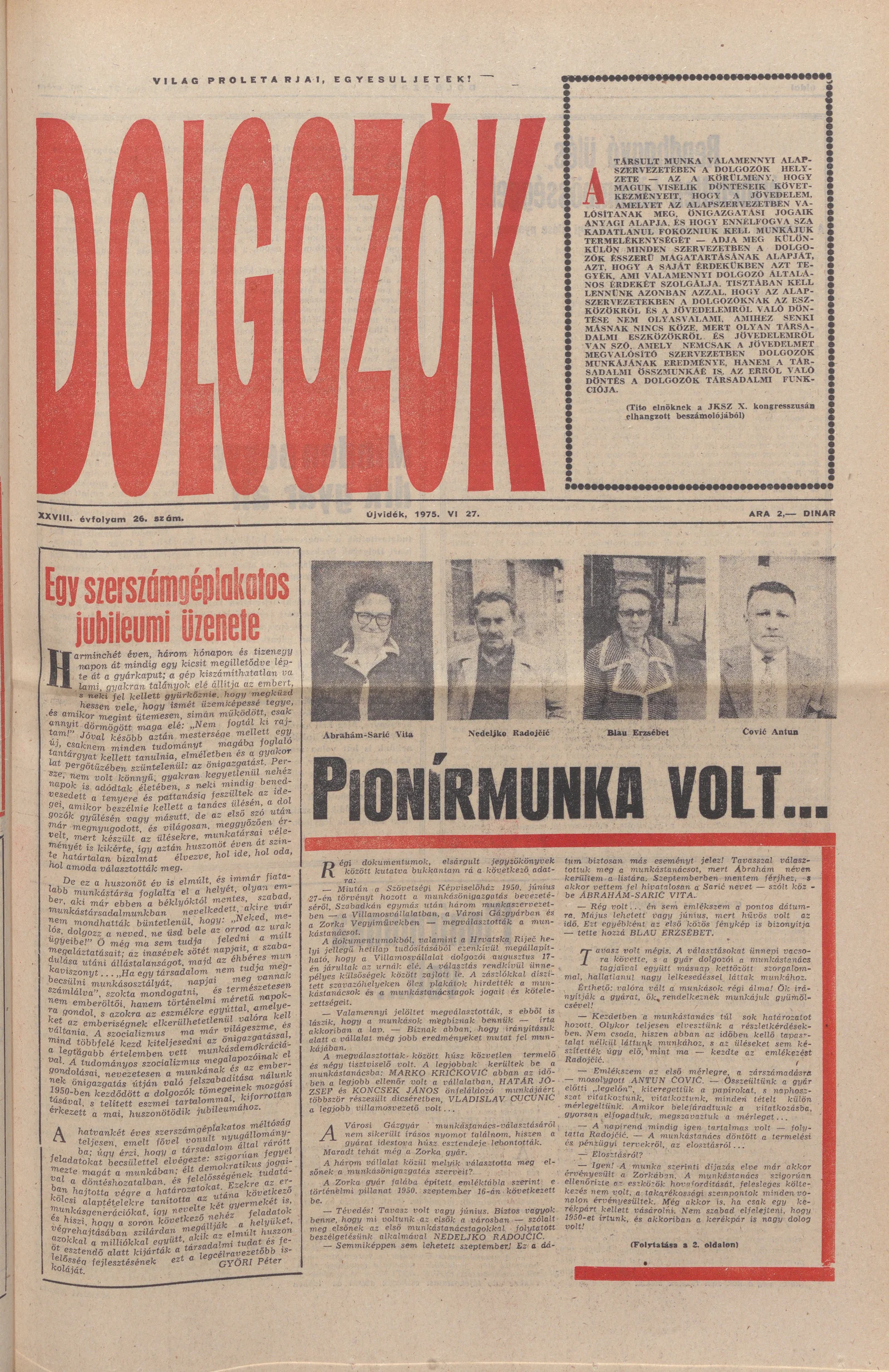 Dolgozók, 29. évf. 1975. június 27. 26. sz.