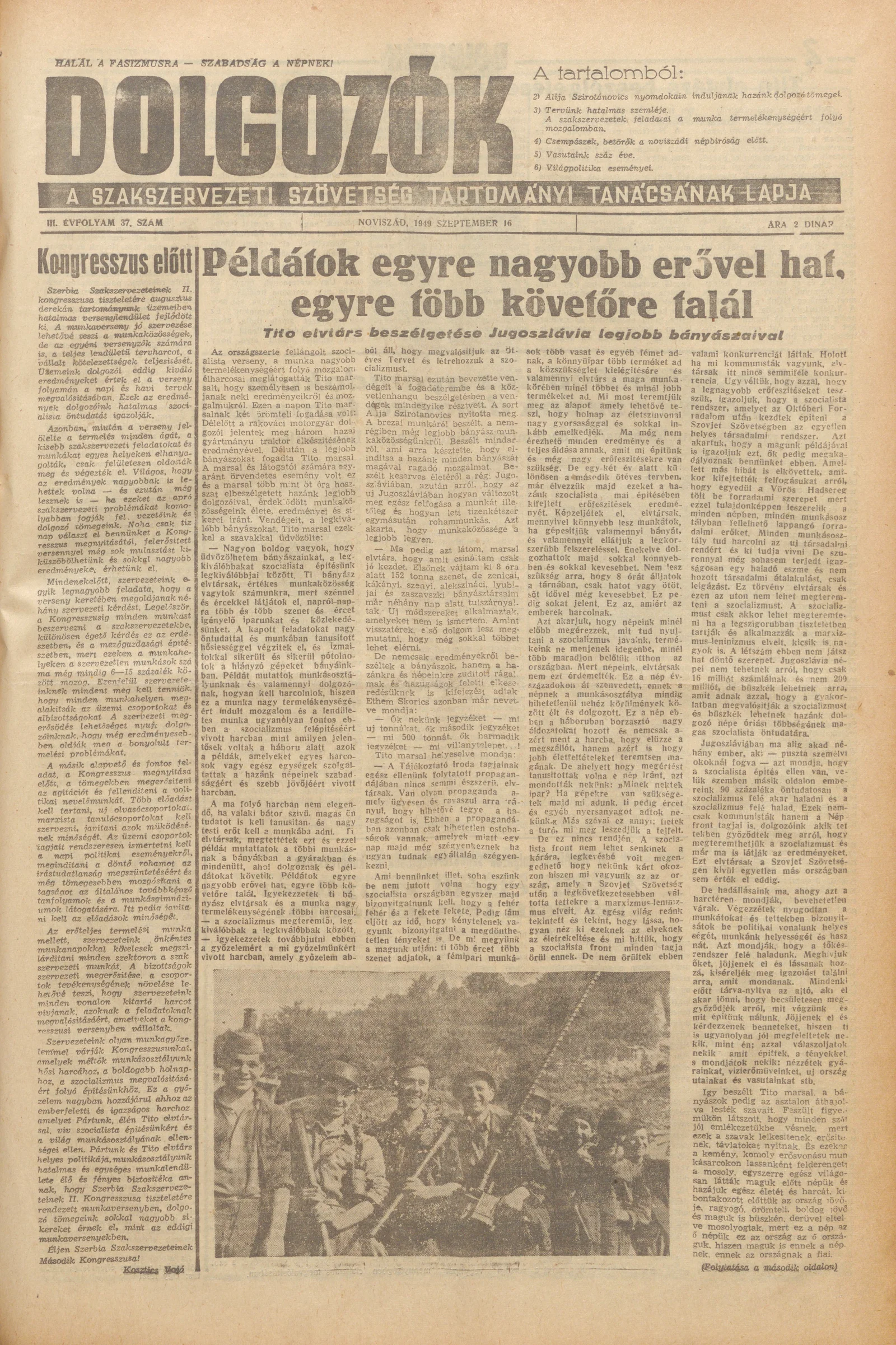 Dolgozók, 3. évf. 1949. szeptember 16. 37. sz.