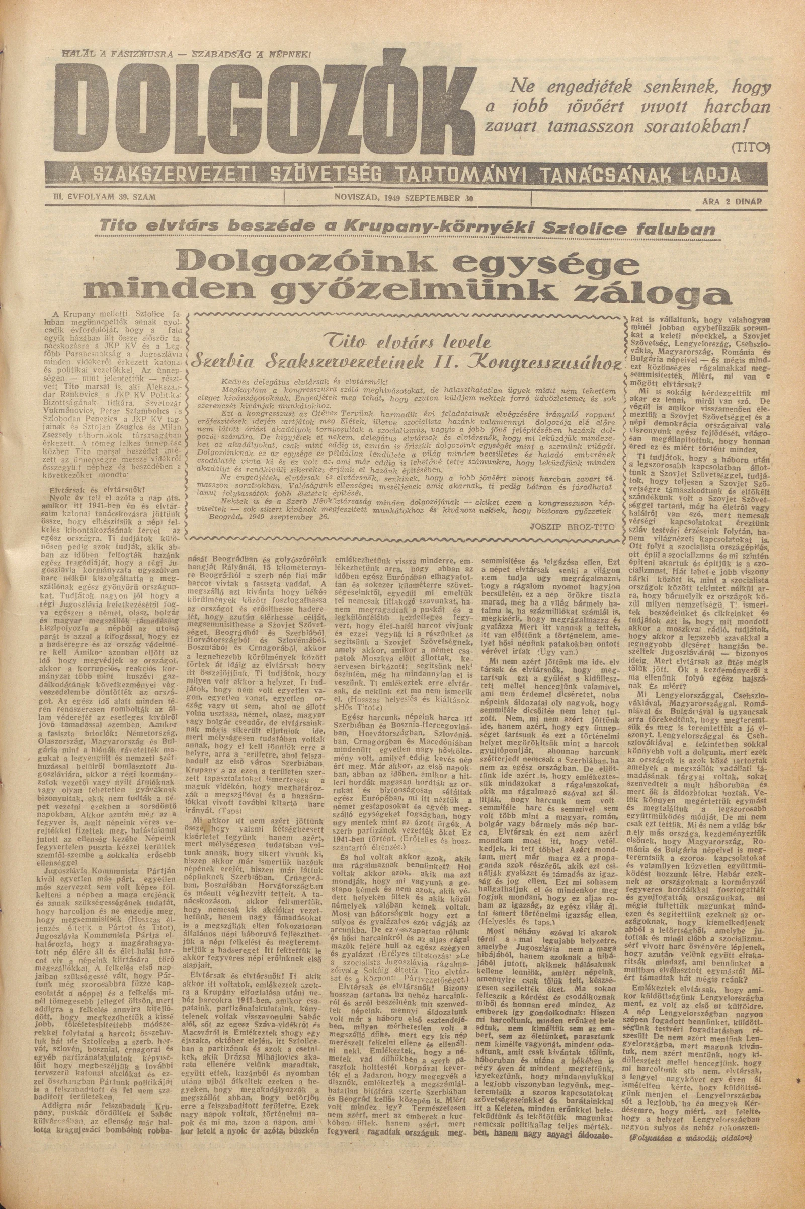 Dolgozók, 3. évf. 1949. szeptember 30. 39. sz.