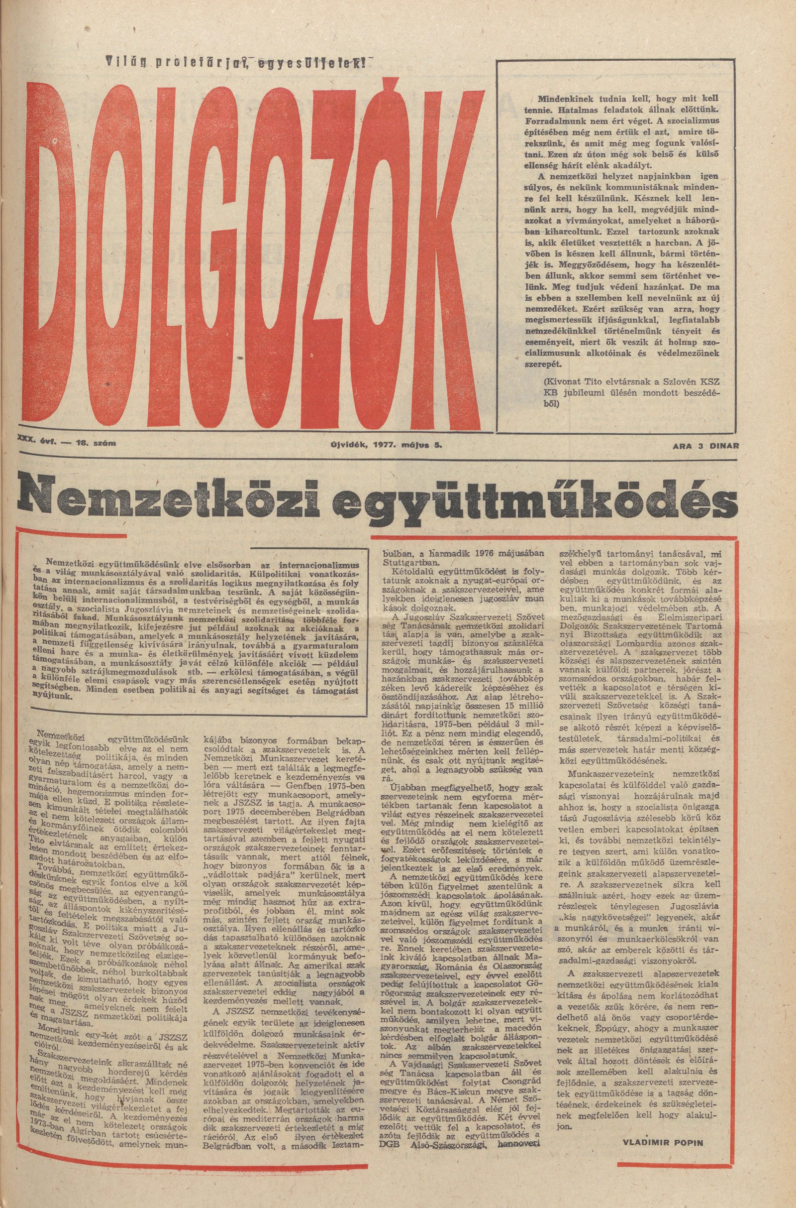 Dolgozók, 31. évf. 1977. május 5. 18. sz.