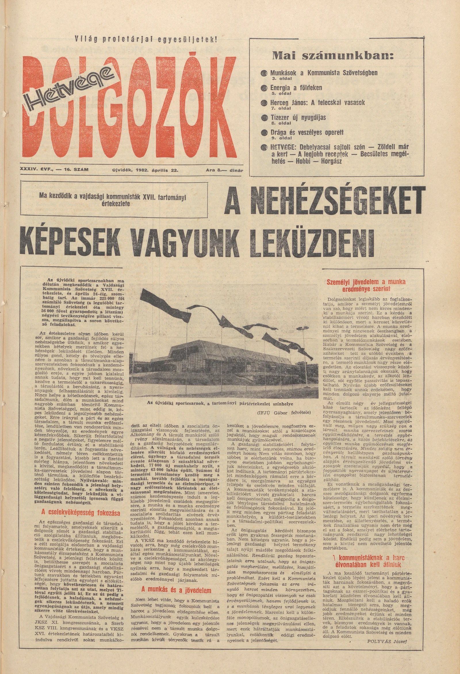 Dolgozók, 36. évf. 1982. április 22. 16. sz.