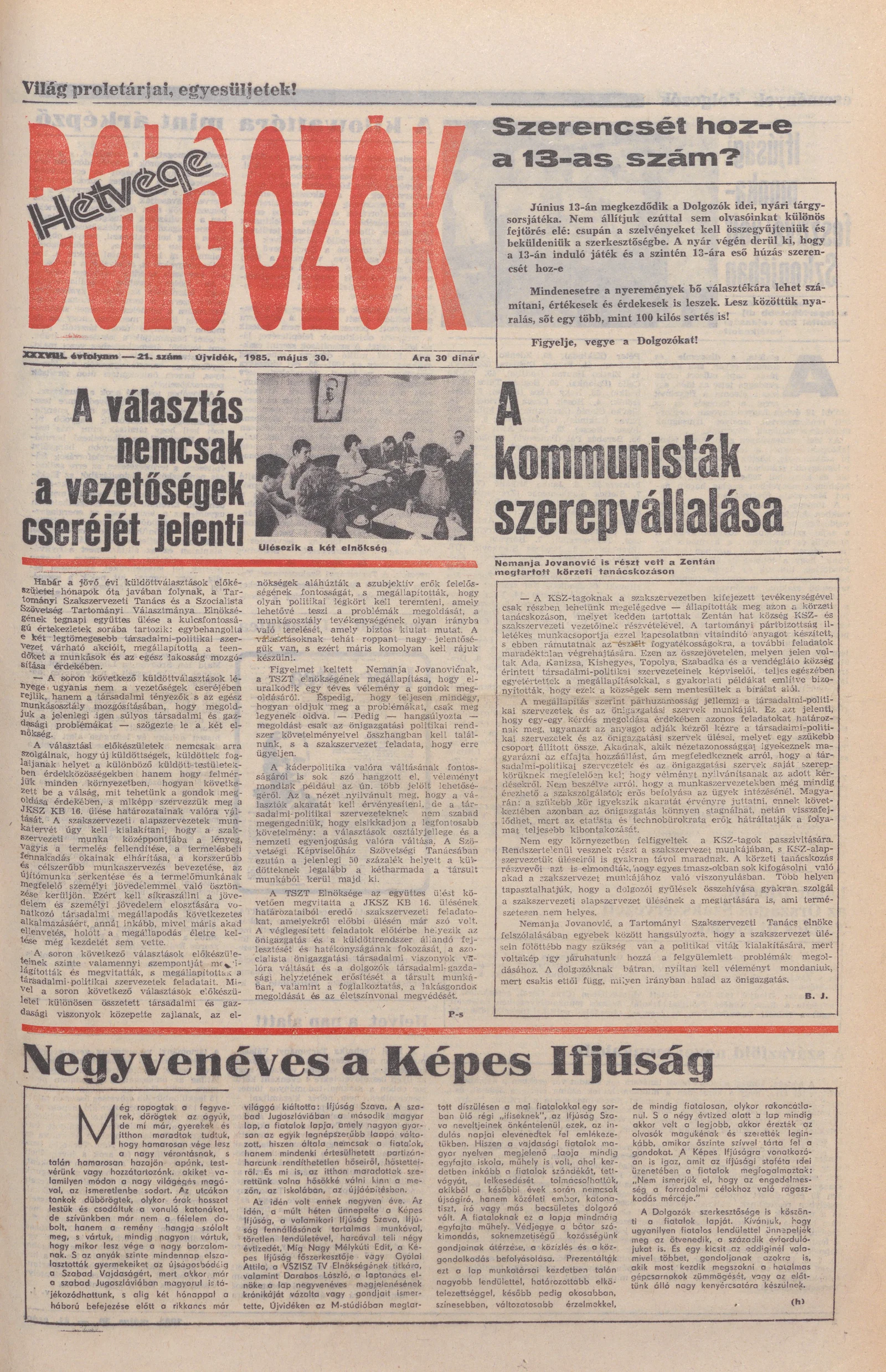 Dolgozók, 39. évf. 1985. május 30. 21. sz.