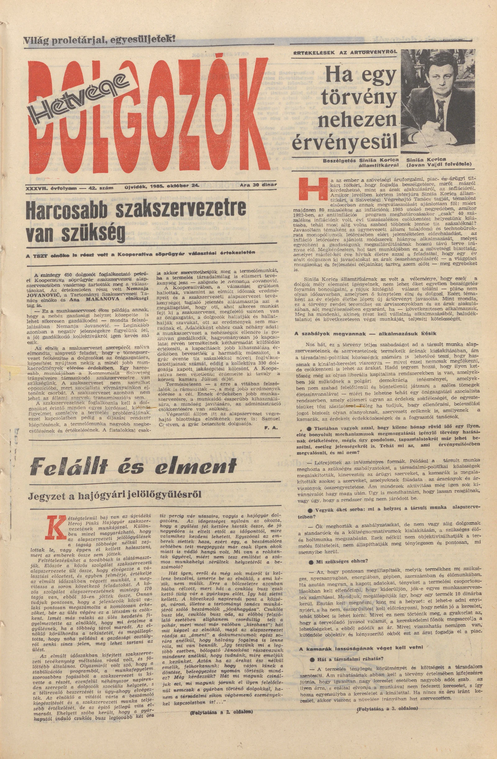 Dolgozók, 39. évf. 1985. október 24. 42. sz.
