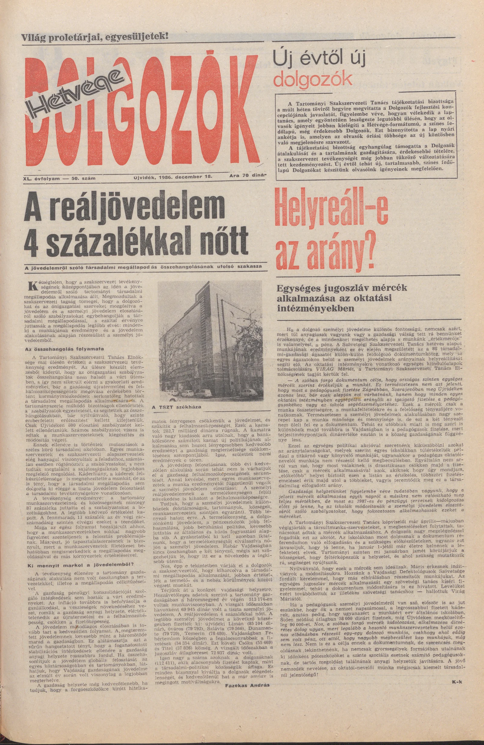 Dolgozók, 40. évf. 1986. december 18. 50. sz.