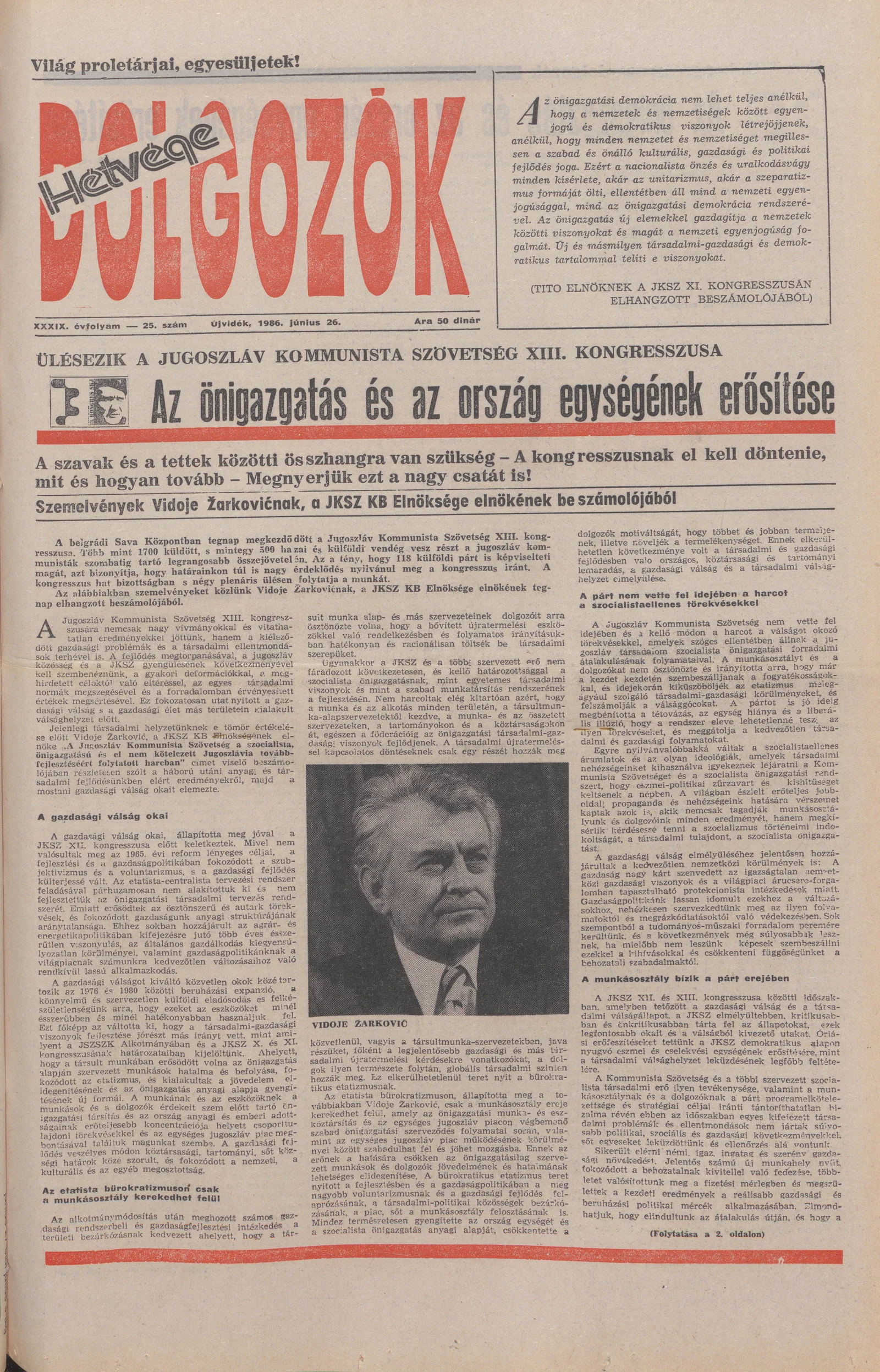Dolgozók, 40. évf. 1986. június 26. 25. sz.