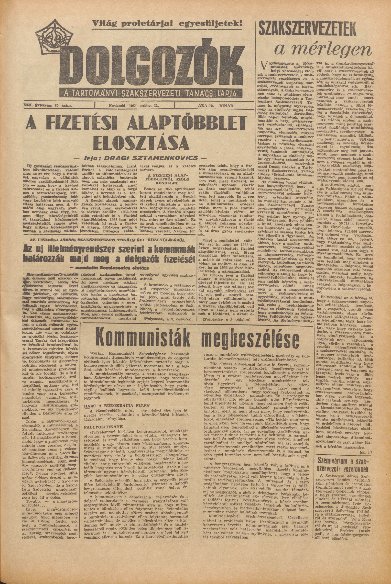 Dolgozók, 8. évf. 1954. május 11. 20. sz.