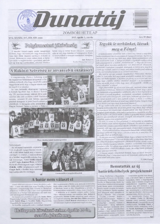 Dunatáj, 17. évf. 2015. április 1. 824–825. sz.