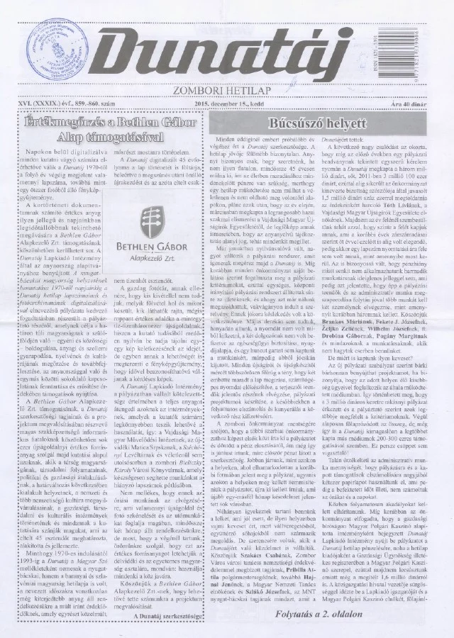 Dunatáj, 17. évf. 2015. december 15. 859–860. sz.