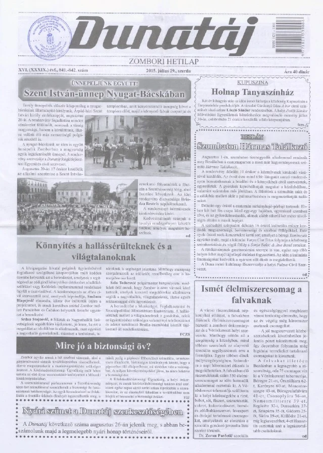 Dunatáj, 17. évf. 2015. július 29. 841–842. sz.