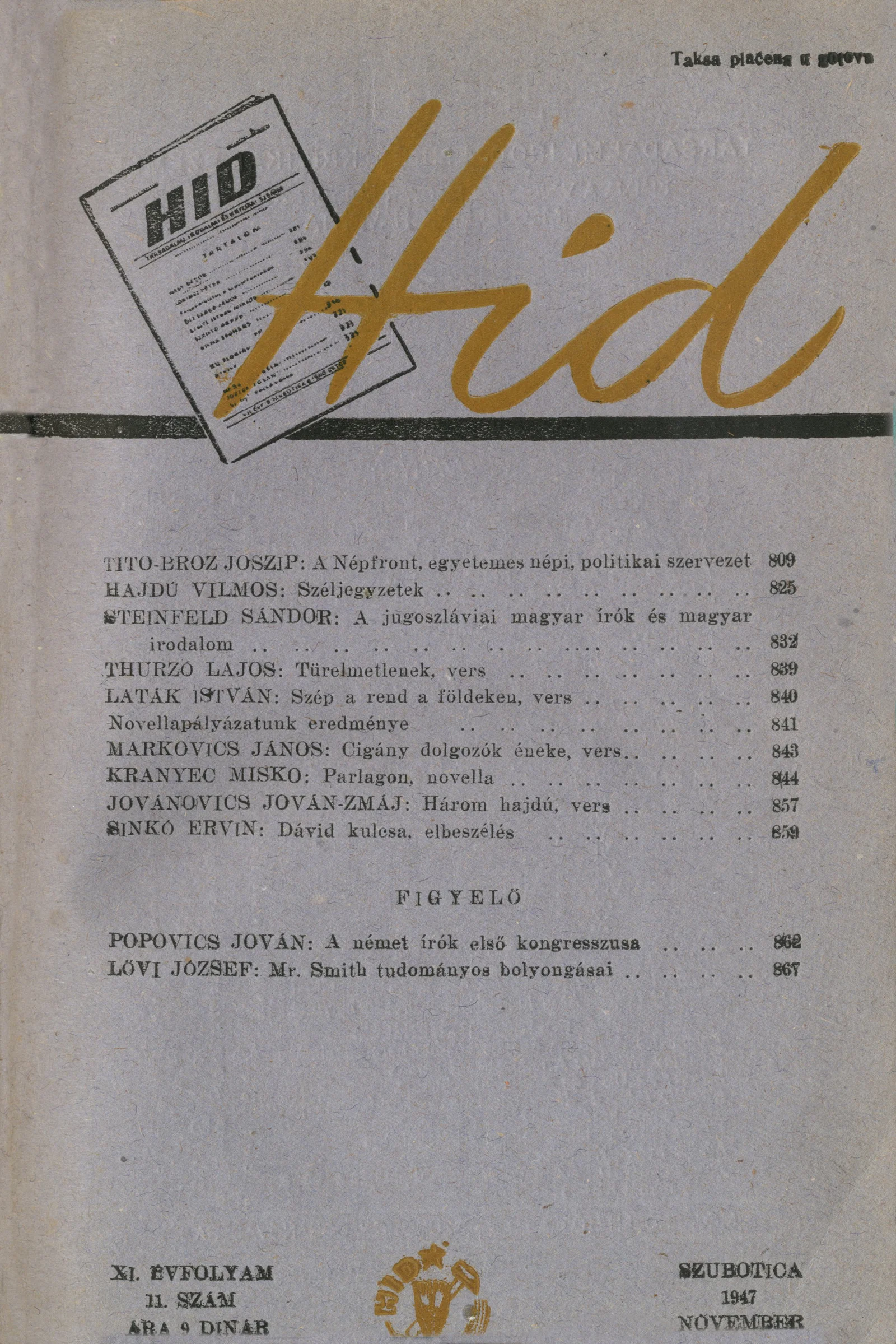 Híd, 11. évf. 1947. november 11. sz. 809–872.