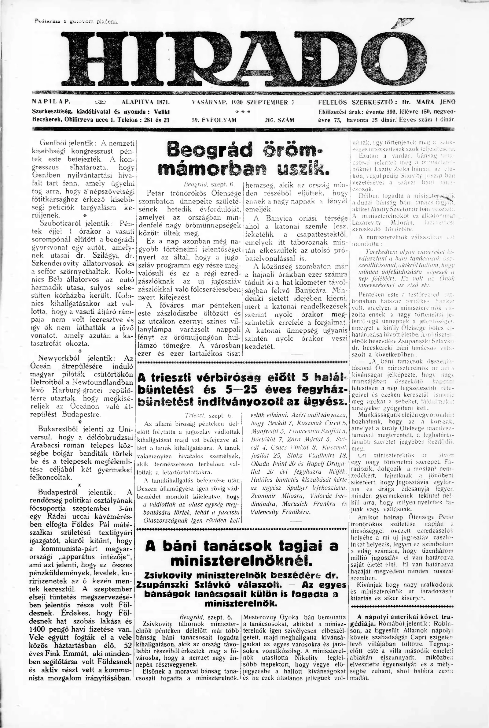 Híradó, 59. évf. 1930. szeptember 7. 207. sz.