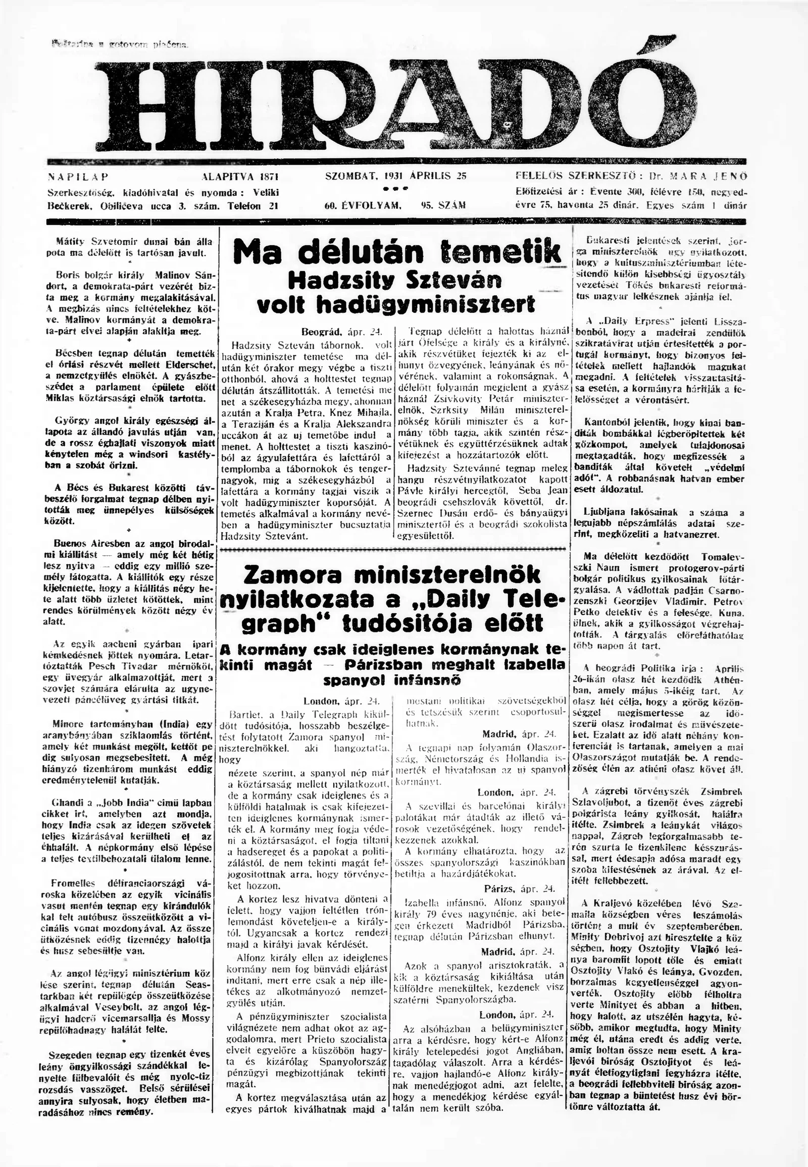 Híradó, 60. évf. 1931. április 25. 95. sz.