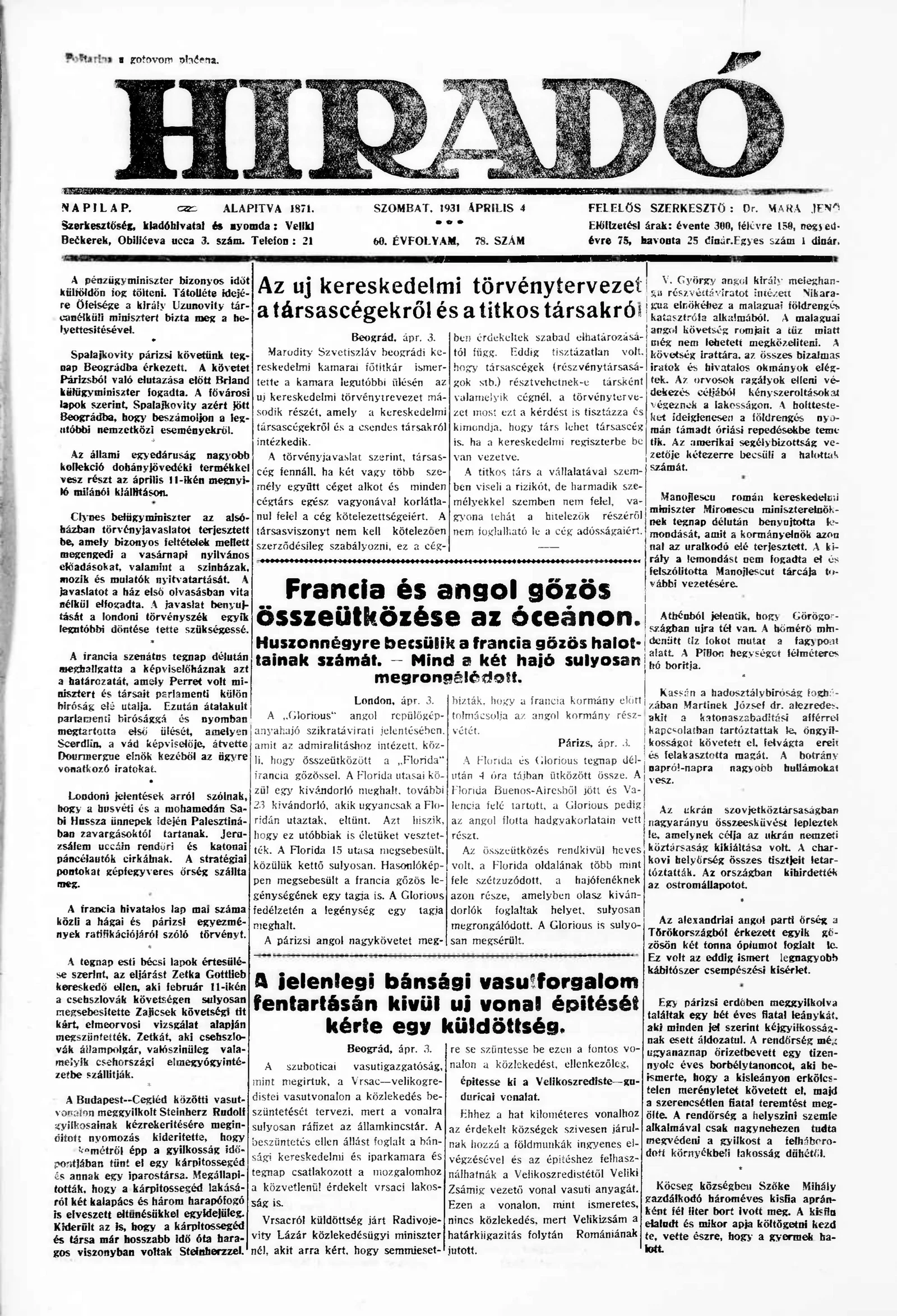 Híradó, 60. évf. 1931. április 4. 78. sz.