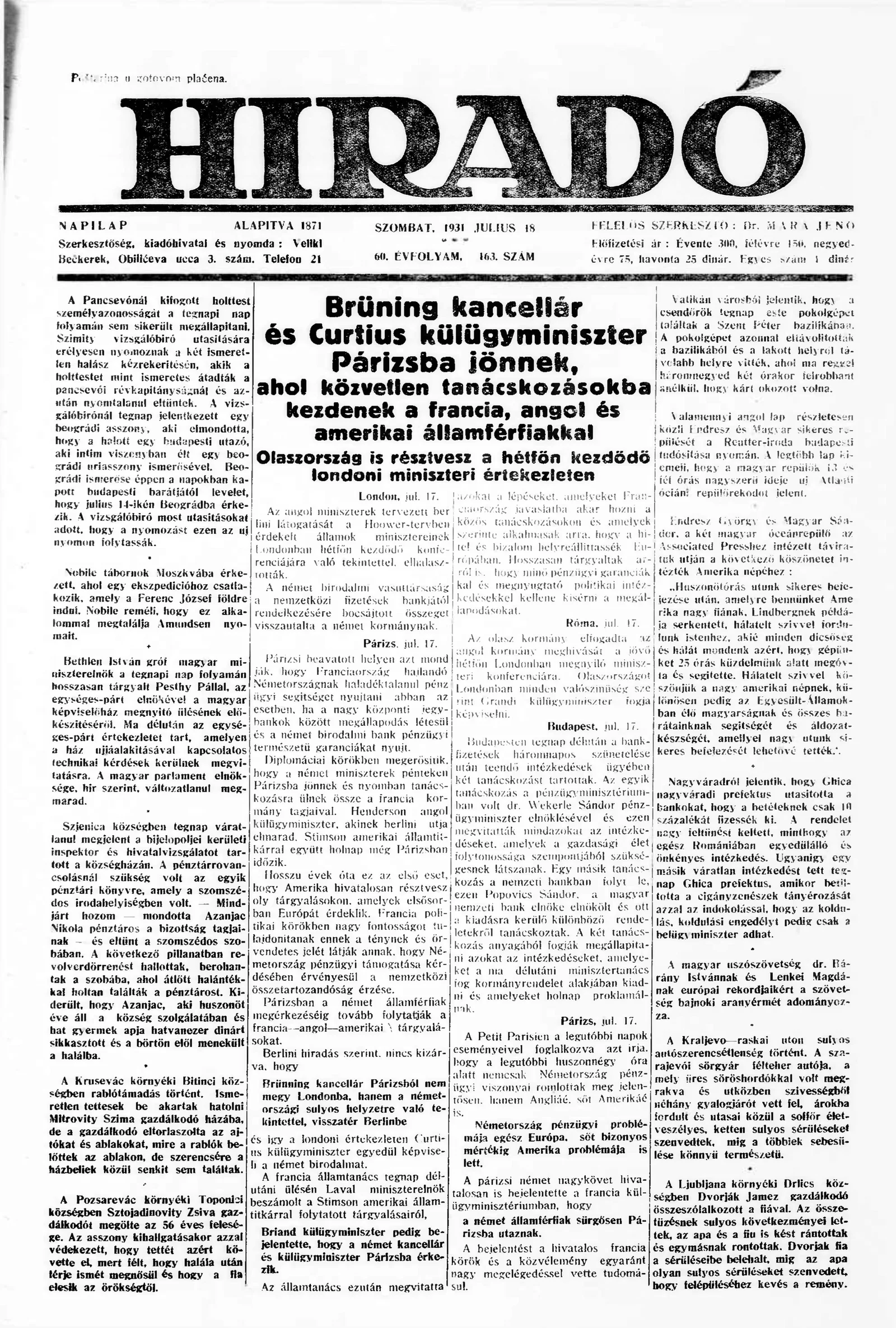 Híradó, 60. évf. 1931. július 18. 163. sz.