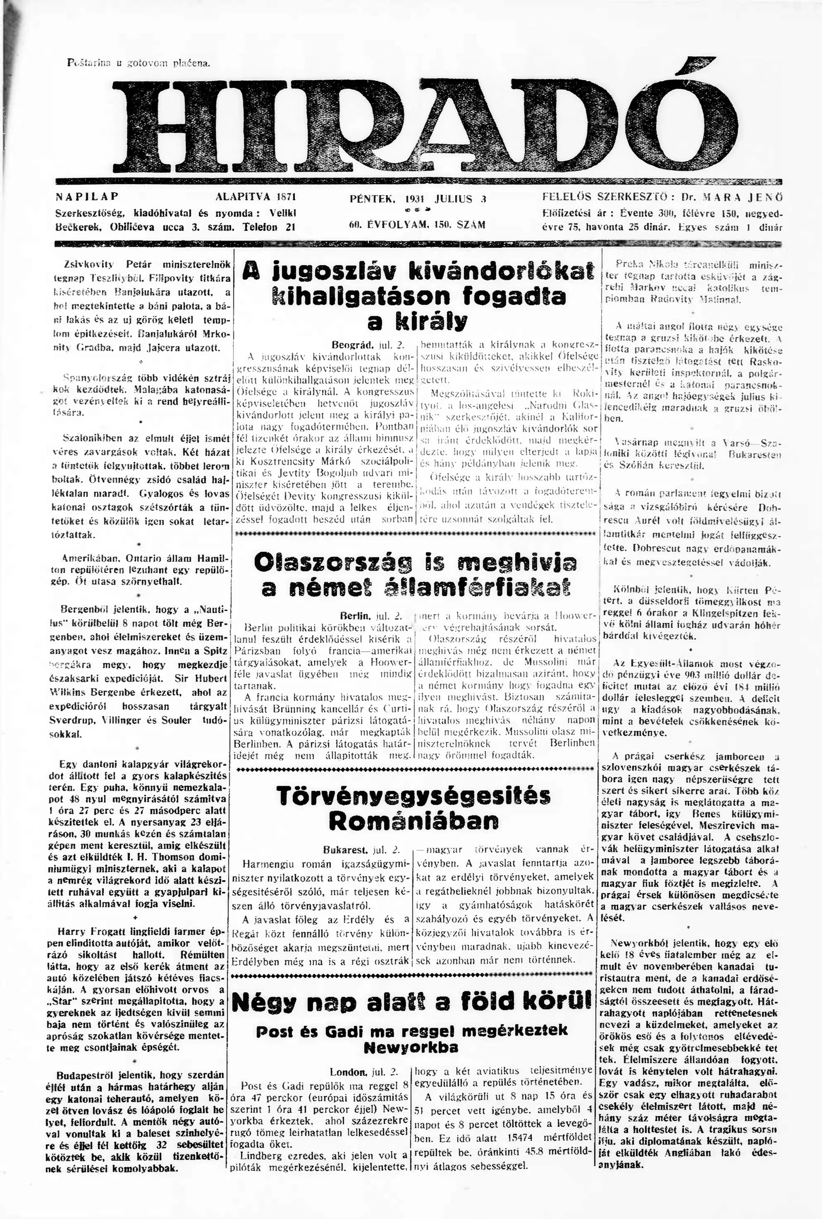 Híradó, 60. évf. 1931. július 3. 150. sz.