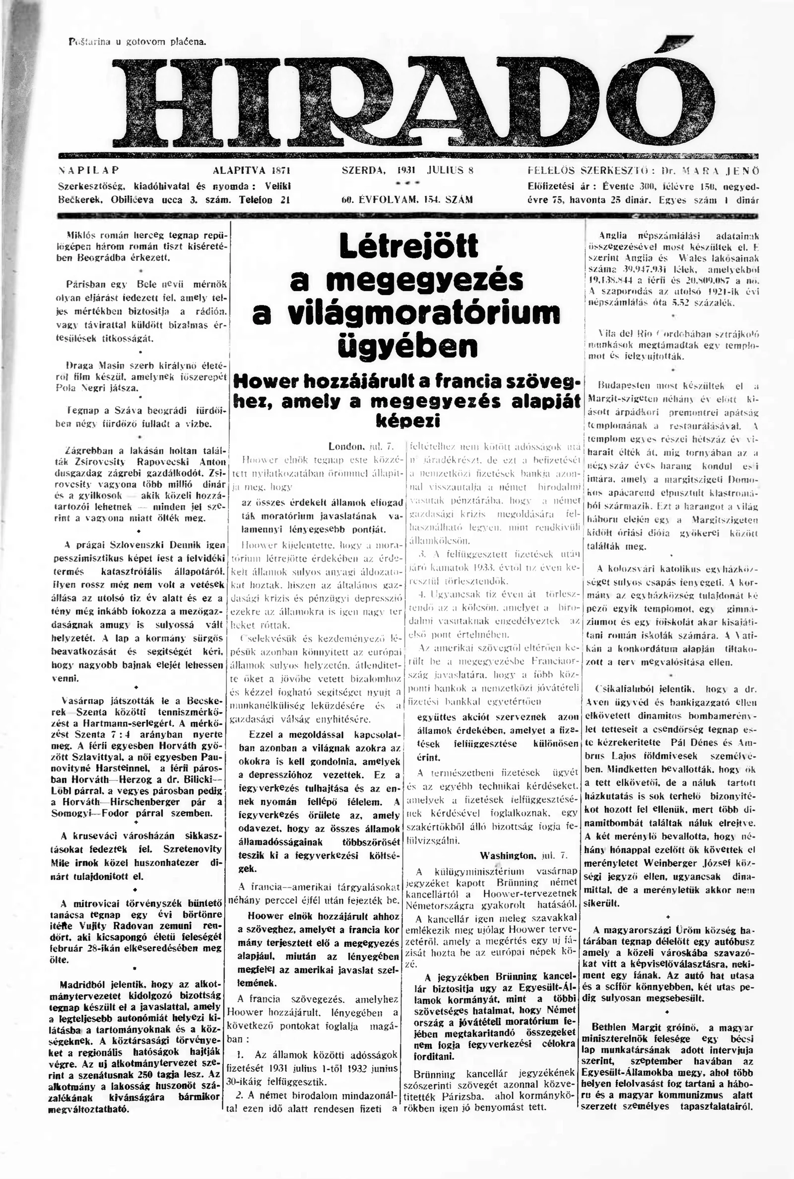 Híradó, 60. évf. 1931. július 8. 154. sz.