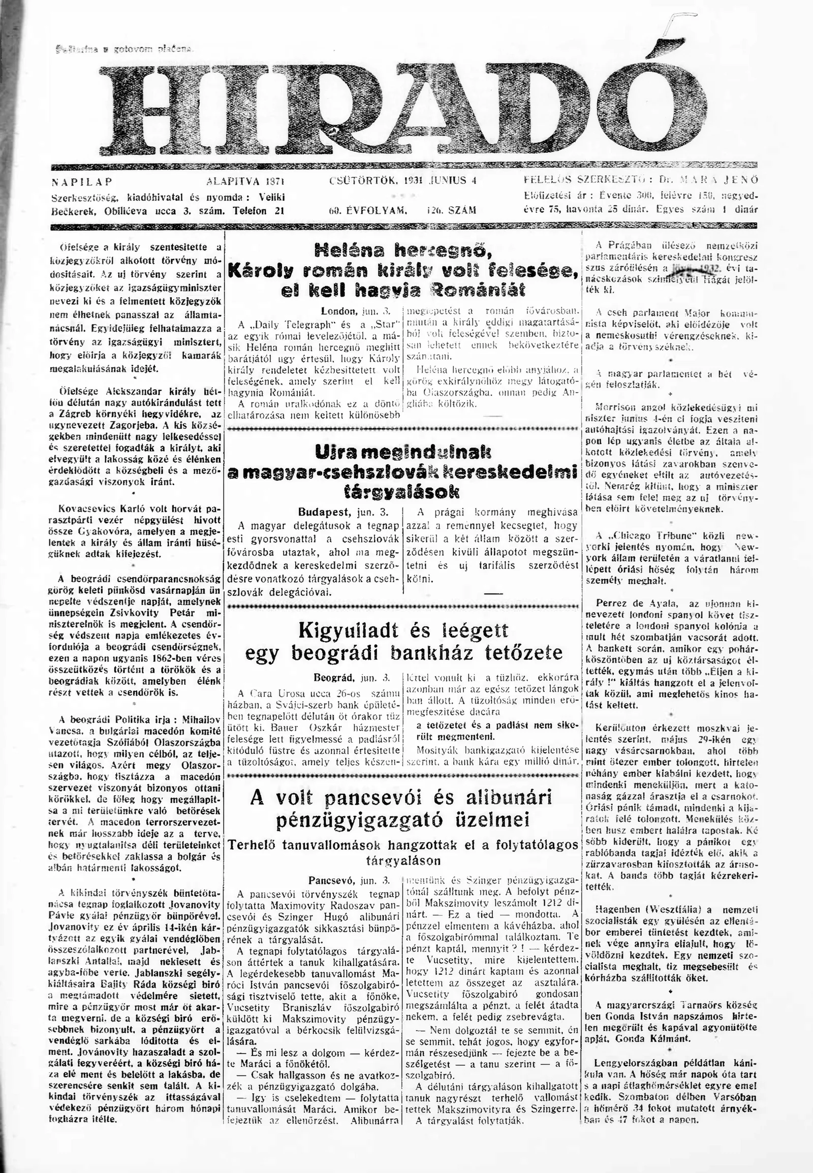 Híradó, 60. évf. 1931. június 4. 126. sz.