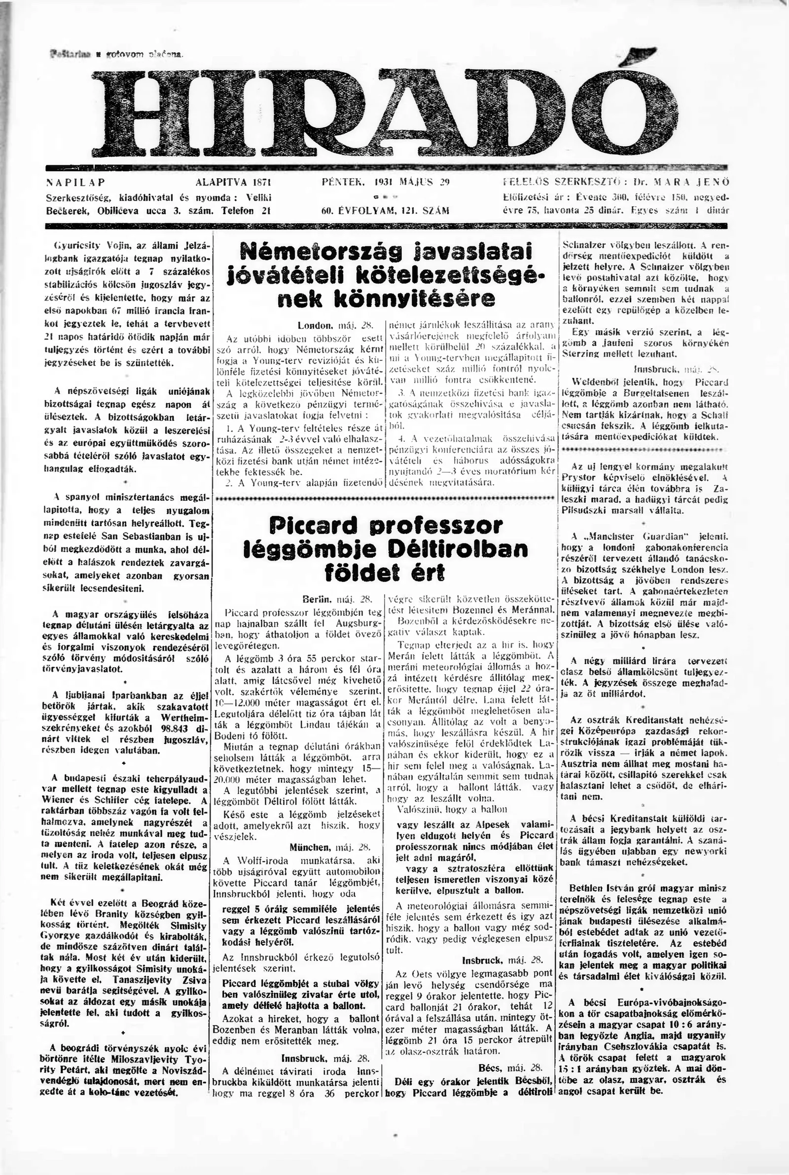 Híradó, 60. évf. 1931. május 29. 121. sz.