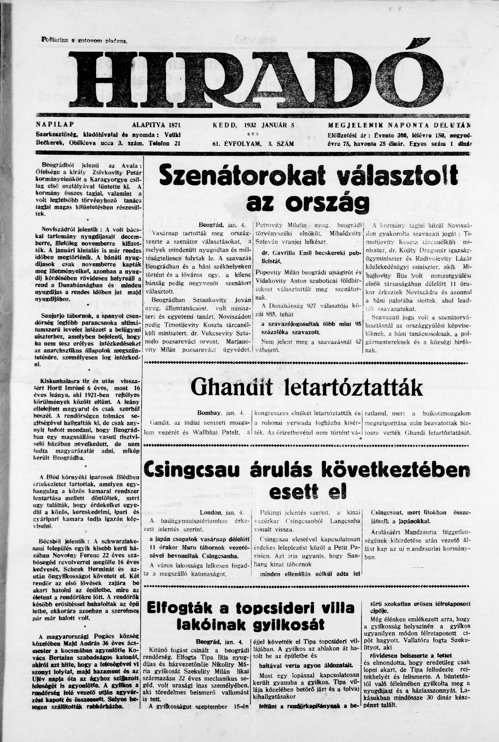 Híradó, 61. évf. 1932. január 5. 3. sz.