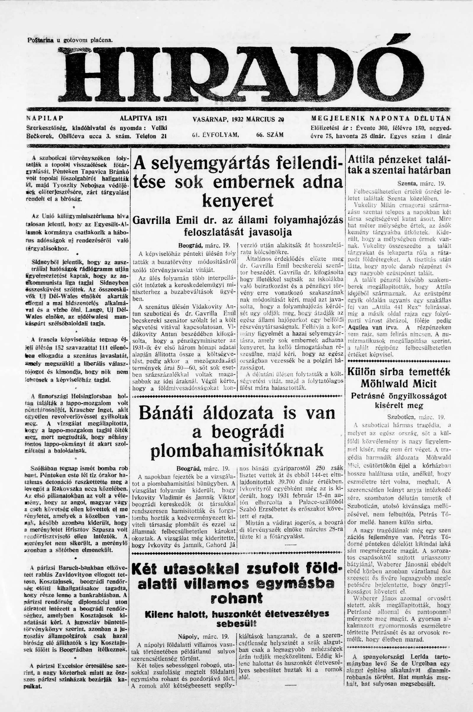 Híradó, 61. évf. 1932. március 20. 66. sz.