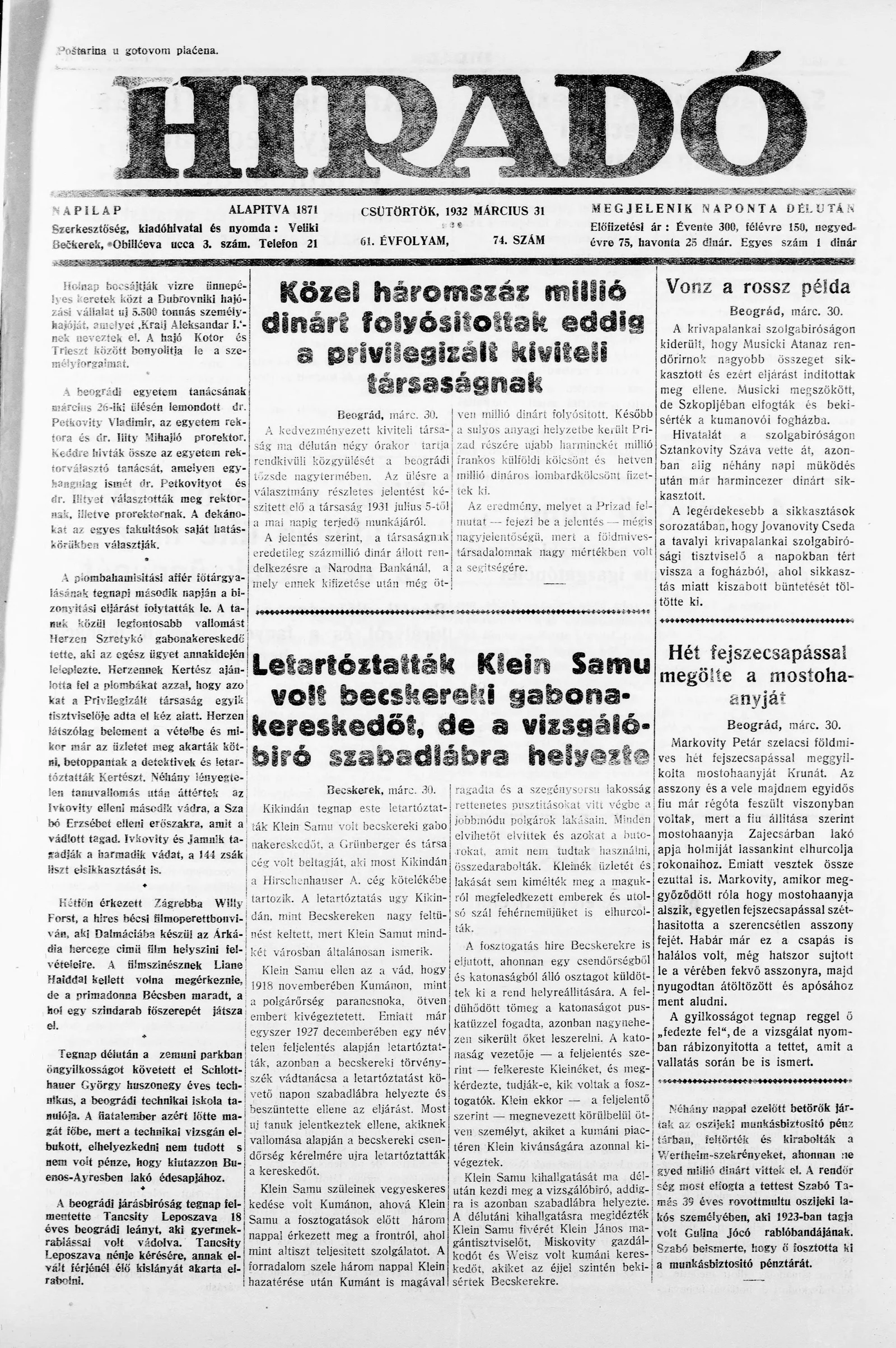 Híradó, 61. évf. 1932. március 31. 74. sz.