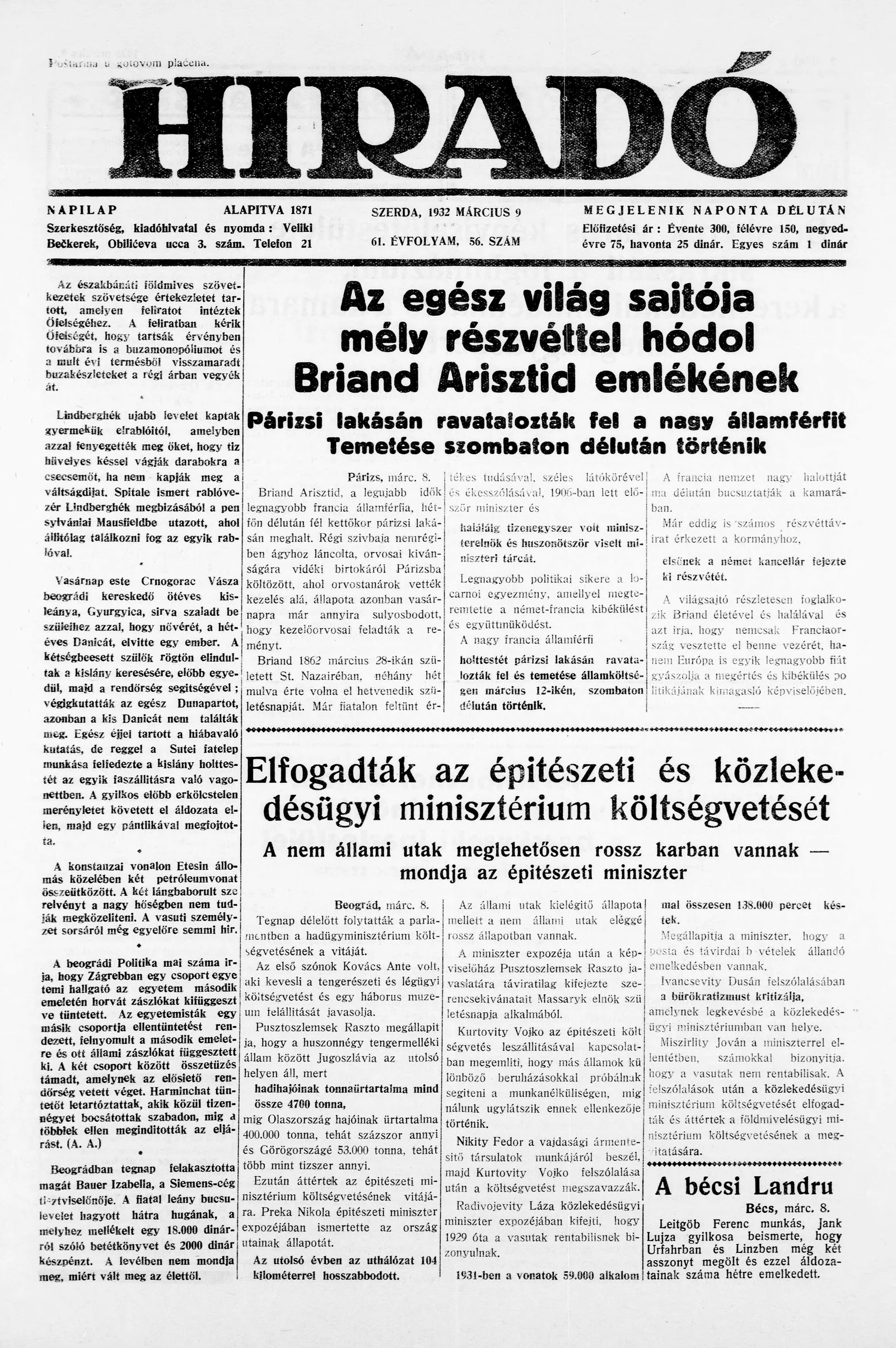 Híradó, 61. évf. 1932. március 9. 56. sz.